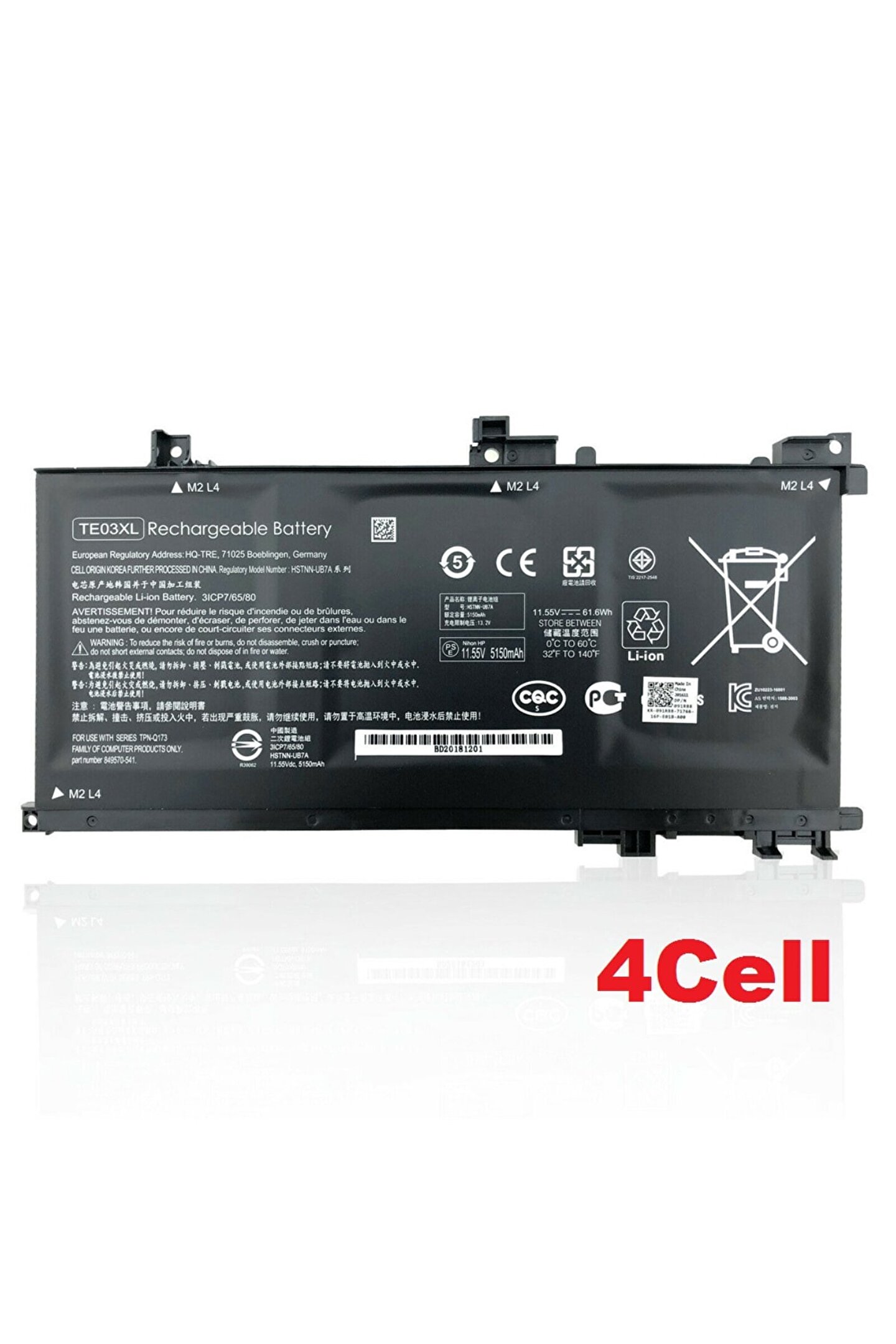 Marka Afila Durumu Yeni ürün Hücreler (Cells) Li; polymer; 4 Cell Voltaj (V) 15; 4 (11; 55V uyumlu) Kapasite (mAh) 3000 Güç (Wh) 46 Renk Siyah Ağırlık (g) 350 Ebatlar (mm) 206 x 107 x 10 Model EAN13 8681863408701 Parça Kodları TE03XL TE04XL Uyumlu Modeller Hp Pavilion 15; bc000, 15; bc000 Touch Hp Omen 15; ax000 Notlar;