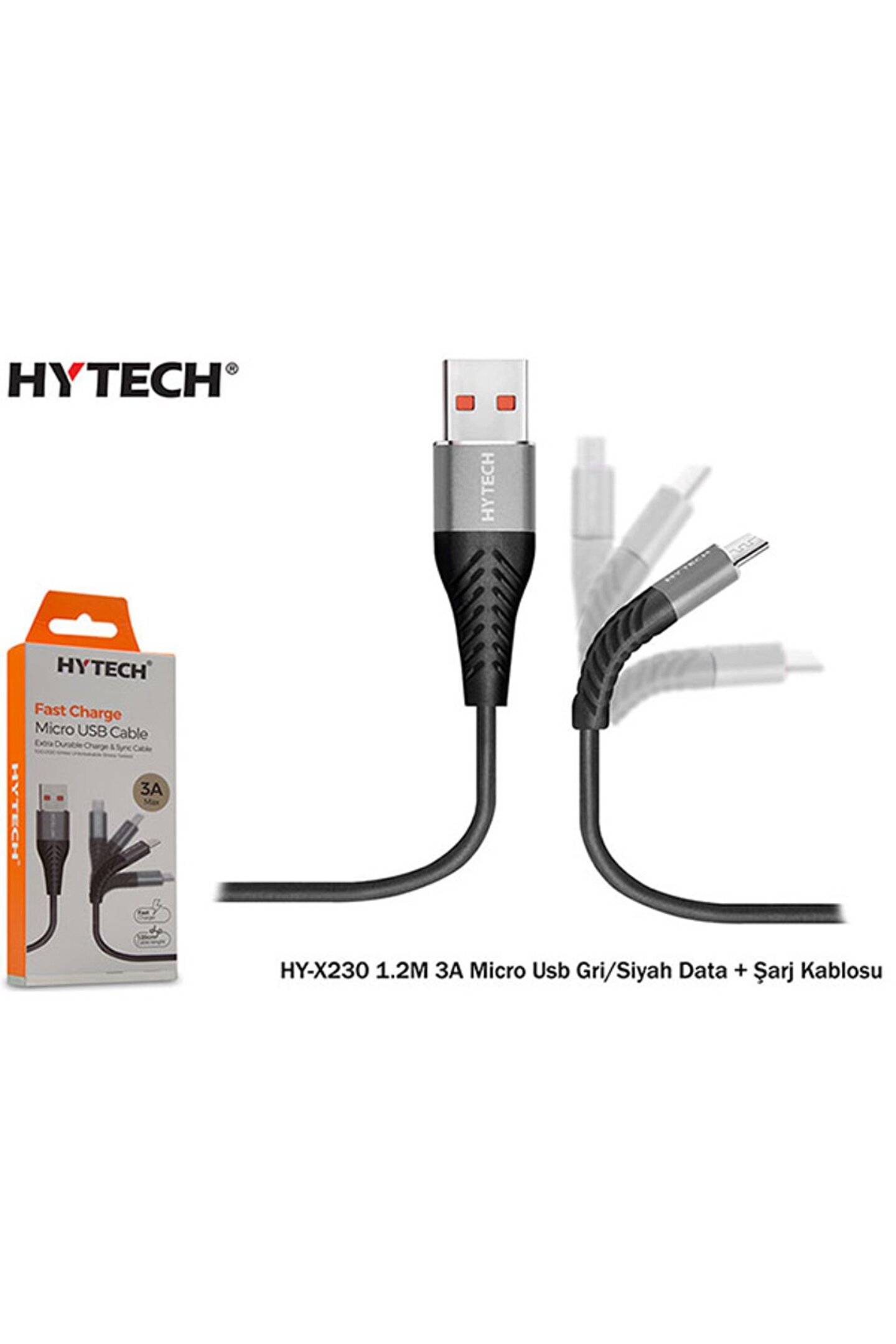 Hyx230 1.2m 3a Micro Usb,gri-siyah