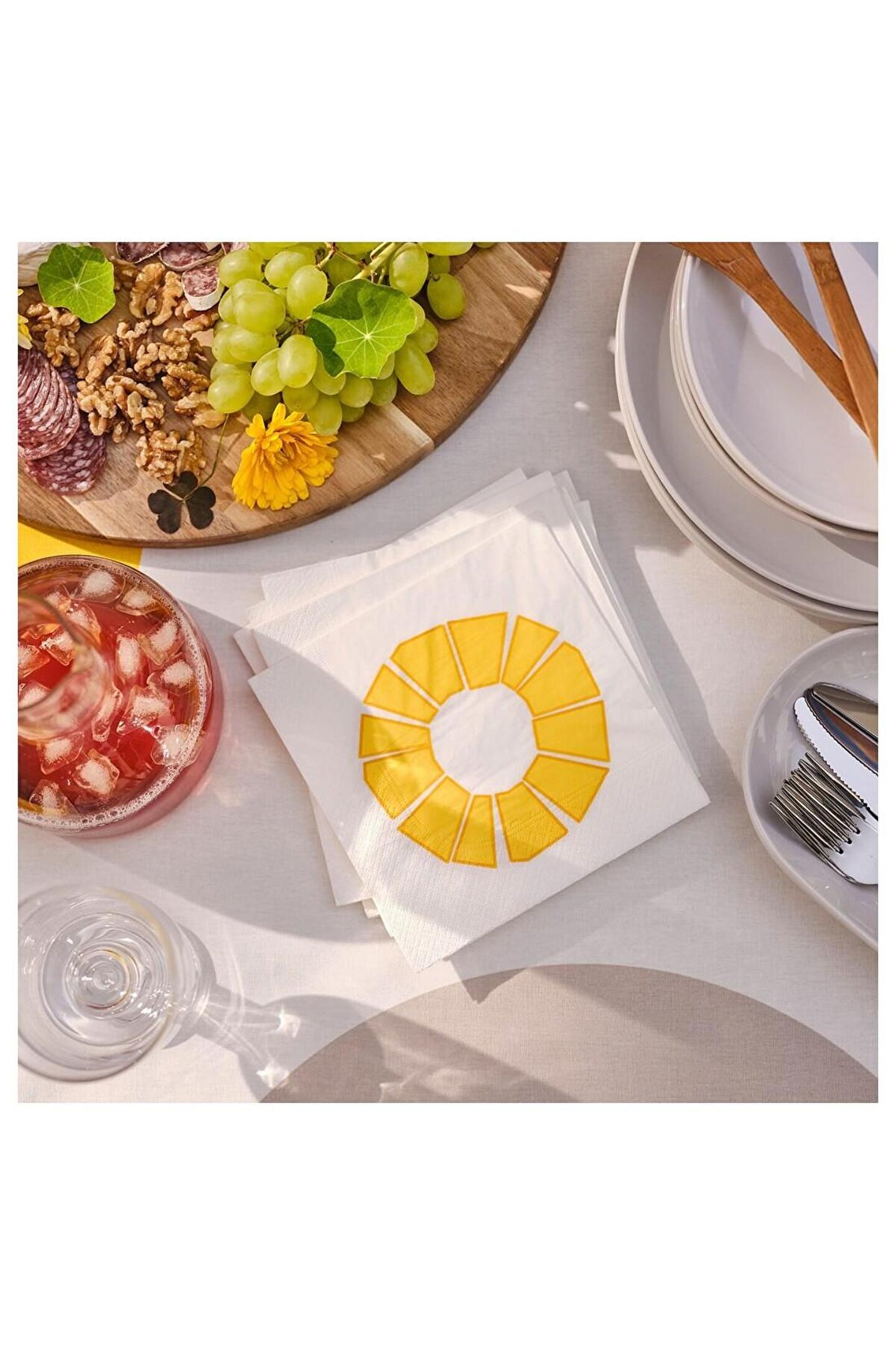 Yazı mutlu renk ve desenlerle karşılayın.; ; Ananas desenli bu peçeteler, özellikle diğer BRÖGGAN ürünleriyle birlikte kullanıldığında kahvaltınıza, kahve molanıza ve partinize enerji katar.; ; Lezzetli ananas parçalarının güneşin rengi ve şeklinden ilham aldığı bu peçetelerle yaz sofradaki yerini alsın.; ; Üç kat kağıttan üretilen peçete yüksek emiş gücüne sahiptir.; ; Desenli peçeteler, sofra düzeninize şık bir dokunuş katmanın kolay bir yoludur.; ; BRÖGGAN koleksiyonunun bir parçası - neşe verici renk ve desenlere sahip ürünler, aileniz ve arkadaşlarınızla yeni yaz anıları yaratmanıza yardımcı olur.; ; Uzun Vadeli Faydalar Doku kağıdı, birkaç kat halinde ince, kreplenmiş bir kağıt kalitesidir.; ; İyi emiciliği ve yumuşaklığı ile peçeteler ve mutfak havluları için mükemmeldir ve kabartma, renklendirme ve desenler sayesinde masa düzenine karakter katmak ve farklı tasarımlar yaratmak mümkündür.; ; Gittikçe daha fazla geri dönüştürülmüş kağıt hammaddesi kullanmaya çalışıyoruz.; ; Yemek atıkları ve yağla temas eden peçeteler ve mutfak havluları geri dönüştürülemez, ancak her zaman biyolojik olarak parçalanabilirler.; ; Etrafınızdaki şeyler duygularınızı etkileyebilir - BRÖGGAN koleksiyonundaki eğlenceli renkler, desen ve şekillerle hayatınızı daha keyifli hale getirmeyi umuyoruz.; ; Bu koleksiyonda, evinizde ve dış mekan alanınızda gerçek bir yaz hissi yaratırken ihtiyaç duyabileceğiniz pek çok şeyi bulabilirsiniz.; ; Tüm bu parçalar, güneşli günlerin ve sıcak yaz akşamlarının tadını çıkarmak için retro renklere ve dayanıklı materyallere sahip.; ; Ailenizi, arkadaşlarınızı ve tüm sevdiklerinizi davet edin, yaza merhaba diyerek birlikte yeni anılar yaratın.; ; Ebatlar Uzunluk: 33 cm Genişlik: 33 cm Paket miktarı: 30 adet Paket Ölçüleri Bu ürün bir kaç paketten oluşmaktadır.; ; Paket Sayısı: 1 Paket No: 1 Genişlik: 16 cm Yükseklik: 3 cm Uzunluk: 16 cm Ağırlık: 0.17 kg;