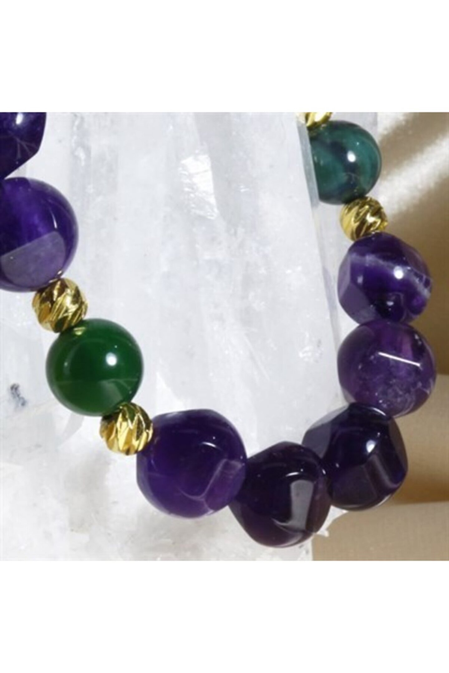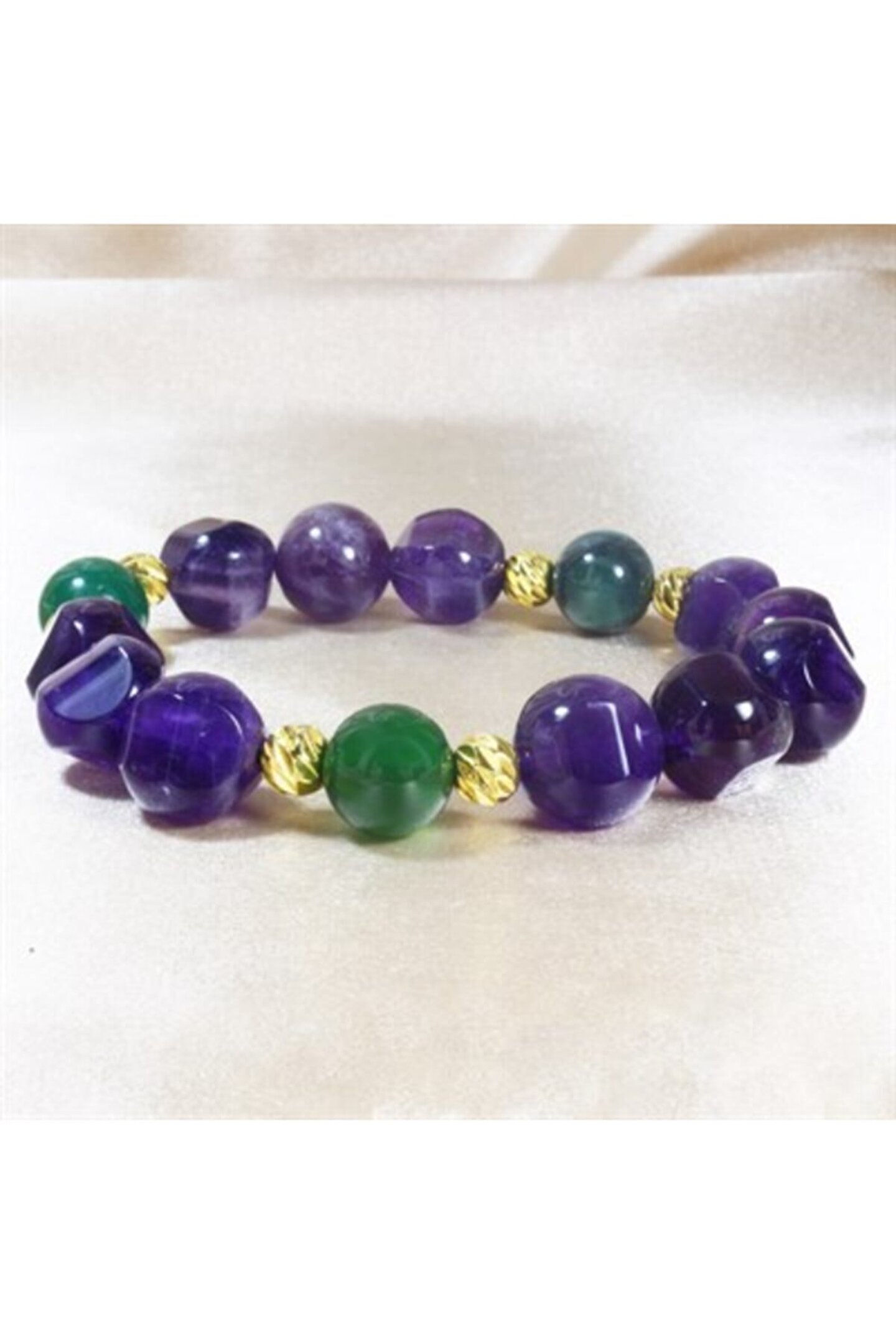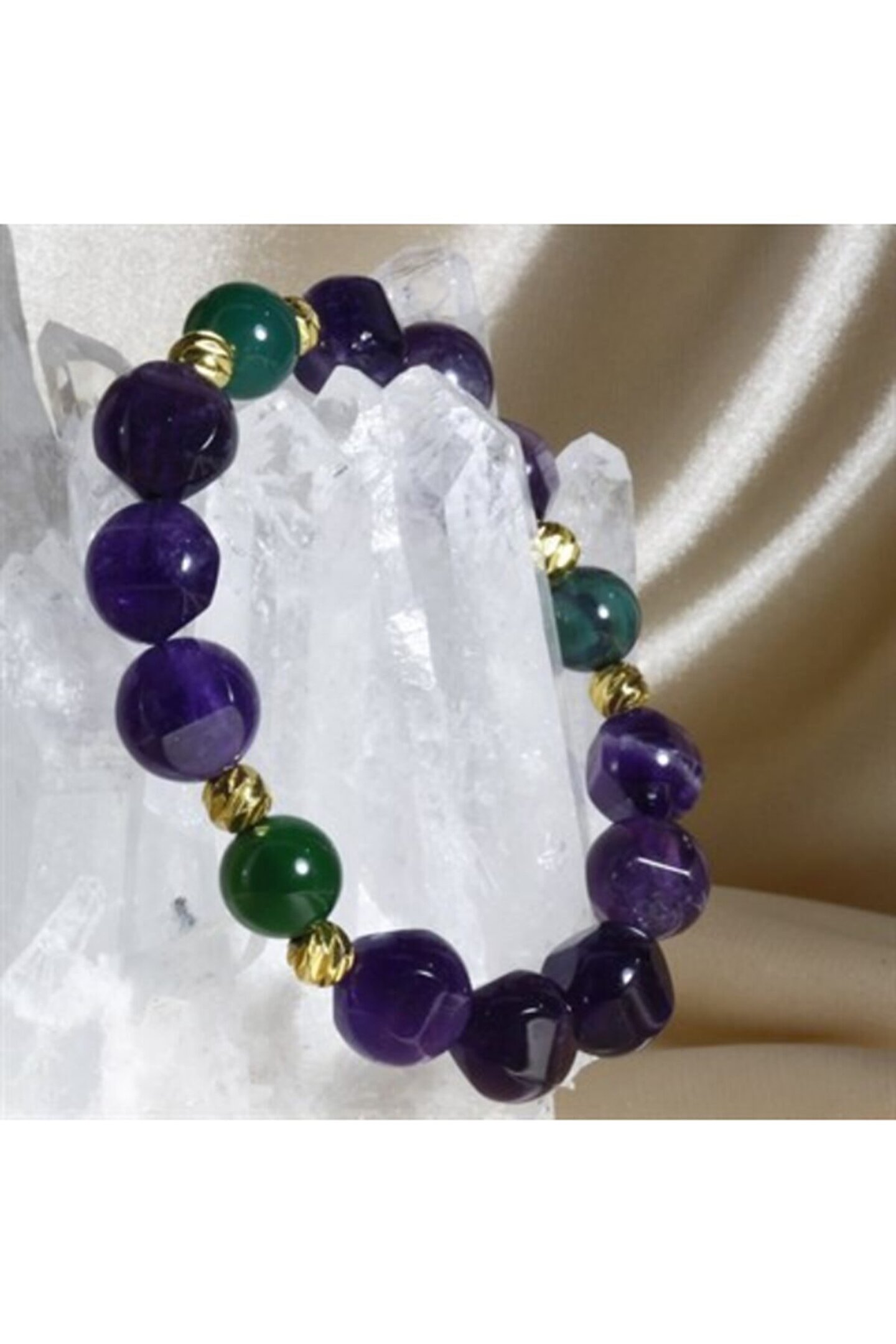 - Altın kaplama malzemesiyle üretilmiş, uzun ömürlü ve şık bir görünüm sunar; - Doğal taş kullanımı, her bilekliğe benzersiz bir karakter kazandırır ve doğallığı ön plana çıkarır; - Ametist taşı, sakinleştirici etkisiyle bilinir ve her gün rahatlıkla kullanılabilir;
