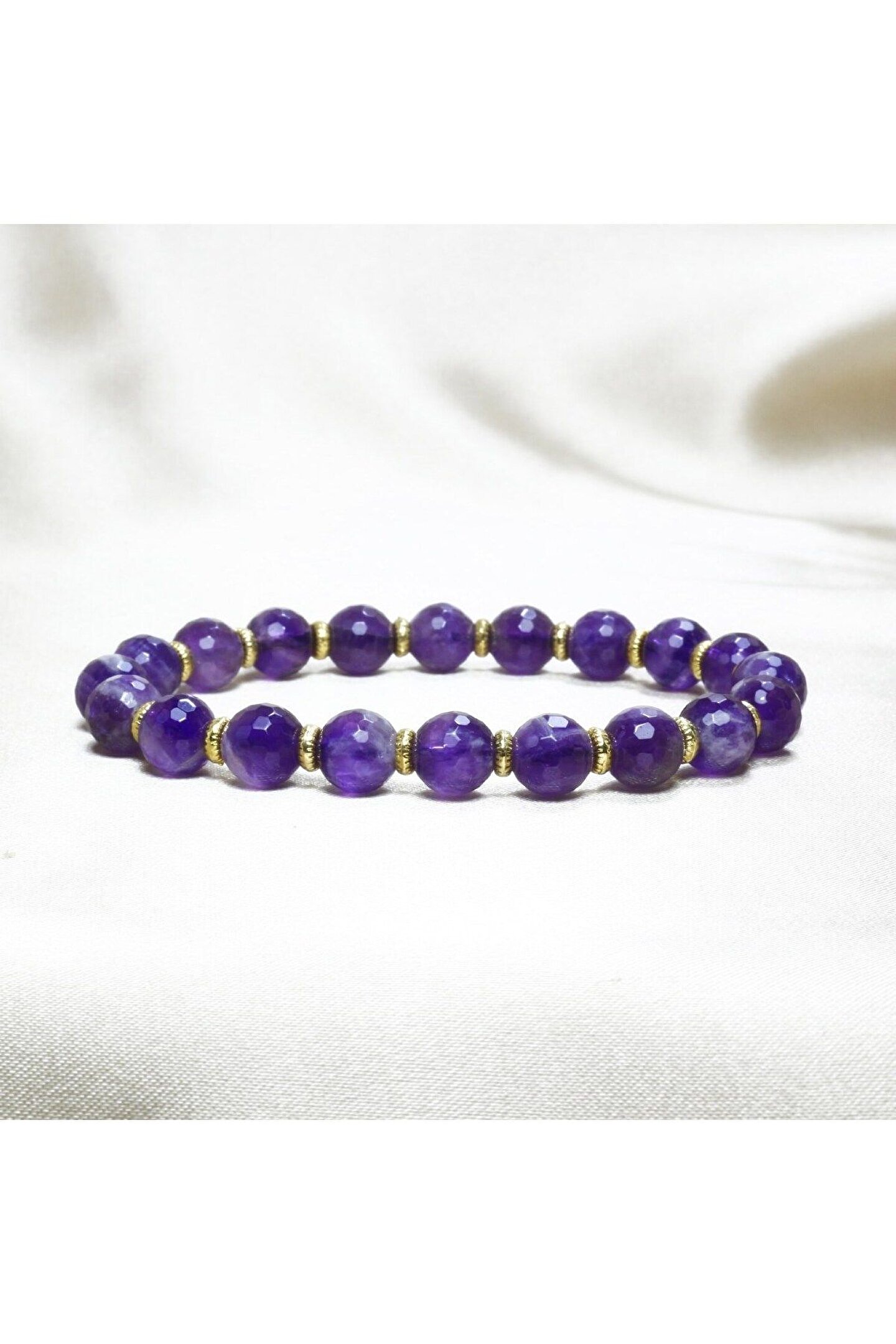 Ametist Taşı Faset Kesimli Bileklik | Gerçek Altın Kaplama Detaylı