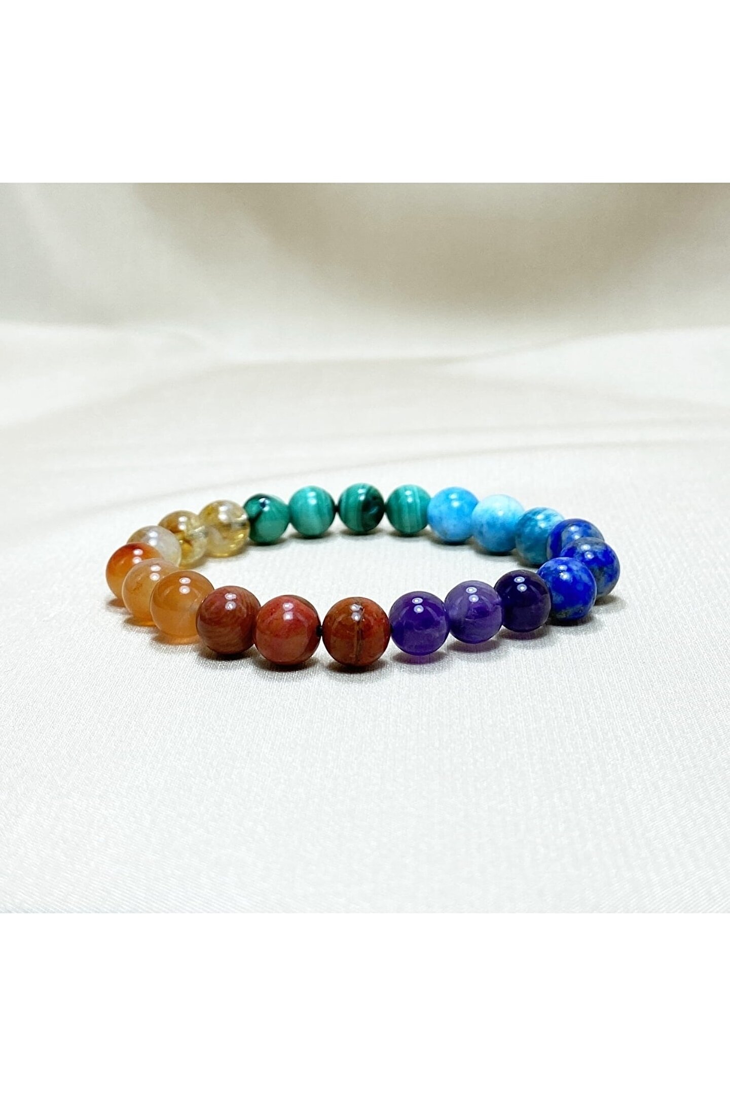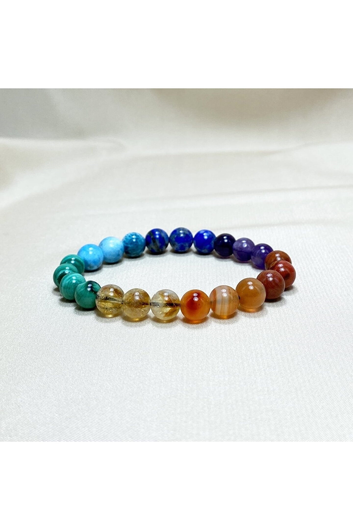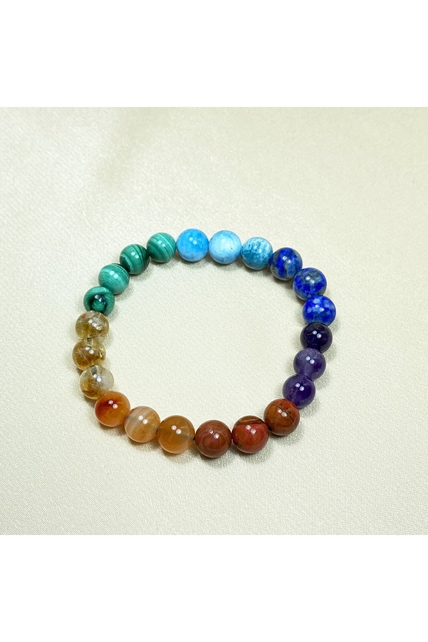 Çakra Bileklik, her bir çakranın ve renklerinin özelliğini Doğal Taş Çakra Bileklik içinde taşıması nedeniyle oldukça kullanışlı ve işlevseldir. ; Çakra Bileklik 7 farklı doğal taş içerir. ; Bu Doğal Taşlar ve Özellikleri renkleri nedeniyle bu bileklik içinde yer alırlar. ; Çakra Taşları, çakraları temsil eden 7 Doğal Taş Mor, Lacivert, Mavi, Yeşil, Sarı, Turuncu ve Kırmızı Çakra Renkleri içeren doğal taşlardan seçilir. ; Örnek vermek gerekirse yeşil rengi temsil etmek için Doğal Taş Bileklik içinde Yeşim Taşı, Akik Taşı, Malakit Taşı veya Aventurin Taşı kullanılabilir. ; Bu seçim yapılırken en kaliteli Doğal Taş sizler için seçilir ve özenle dizilir. ; Şu an incelediğiniz bileklikte ise Akik taşı, Sitrin taşı, Aventurin taşı, Apatit Taşı, Malakit taşı, Lapis taşı, Ametist taşı kullanılmıştır. ; Çakra Bileklik tane ebatları 8 mm'dir. ; Kök Çakra - Kırmızı - Jasper Mide Çakra - Turuncu - Akik Sinir Ağı Çakrası - Sarı - Sitrin Kalp Çakrası - Yeşil - Malakit Boğaz Çakrası - Mavi - Apatit Göz Çakrası - Lacivert - Lapis Lazuli Taç Çakra - Mor - Ametist;