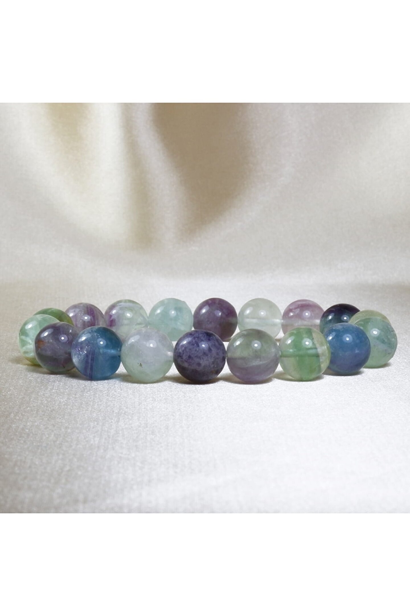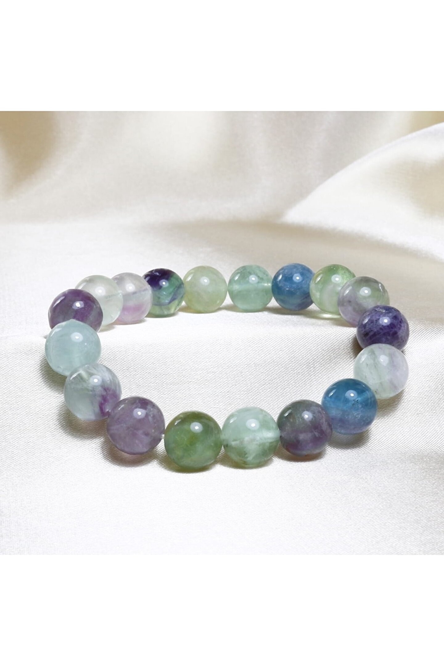 Doğal Florit taşı kullanılarak üretilmiş, zarif ve şık bir aksesuar; Küre kesim tasarımı ile modern ve estetik bir görünüm sunar; 10 mm boyutundaki bu bileklik, bileklerinize rahat bir kullanım sağlar; Doğal taş materyali sayesinde her parça benzersiz ve otantik bir dokunuş taşır;