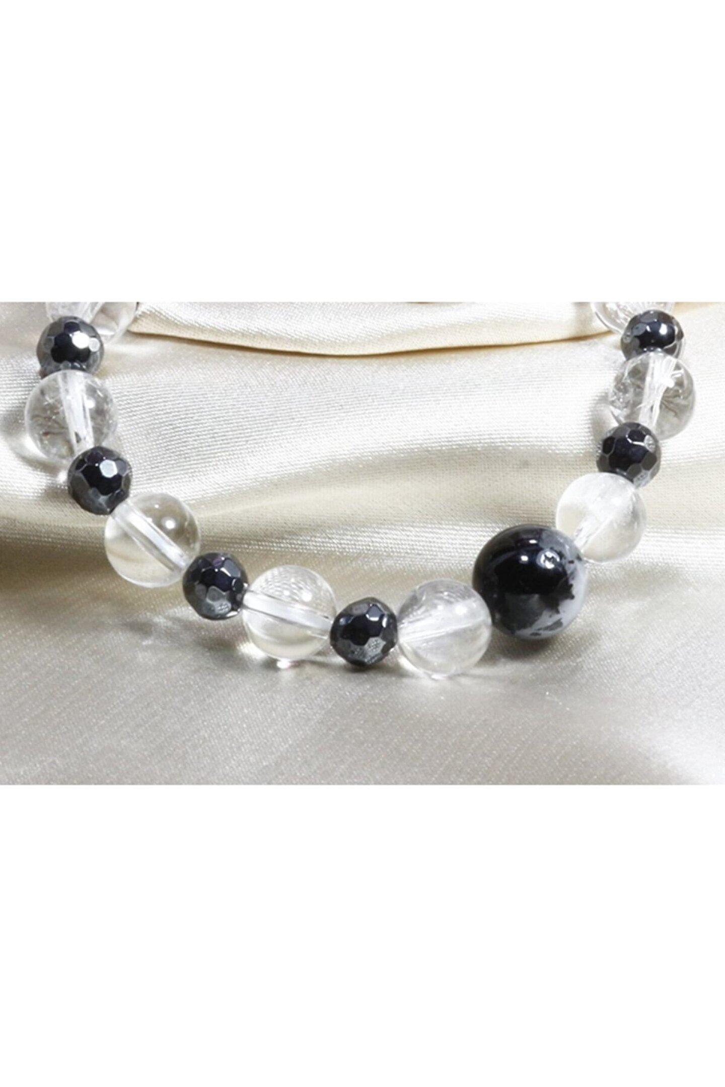 Özel Tasarım Doğal Taşlı Bileklik Butik olarak özel üretilen Kuvars Hematit Bileklik, zıtlıkların birlikteliğinin çok şık bir yorumu olarak karşınızda. ; Kuvars taşının eşsiz şifası ile elmas kesimli hematit taşının parıltısı harika bir uyum içinde size ihtiyacınız olan şıklığı ve sadeliği vaad ediyor. ; Özel tasarım doğal taşlı bileklikte 10 mm küre kesimli rutil kuvars ile detaylandırılmıştır. ; Kuvars bileklik tane ebatları 8 mm / Elmas Kesim Hematit 6 mm;