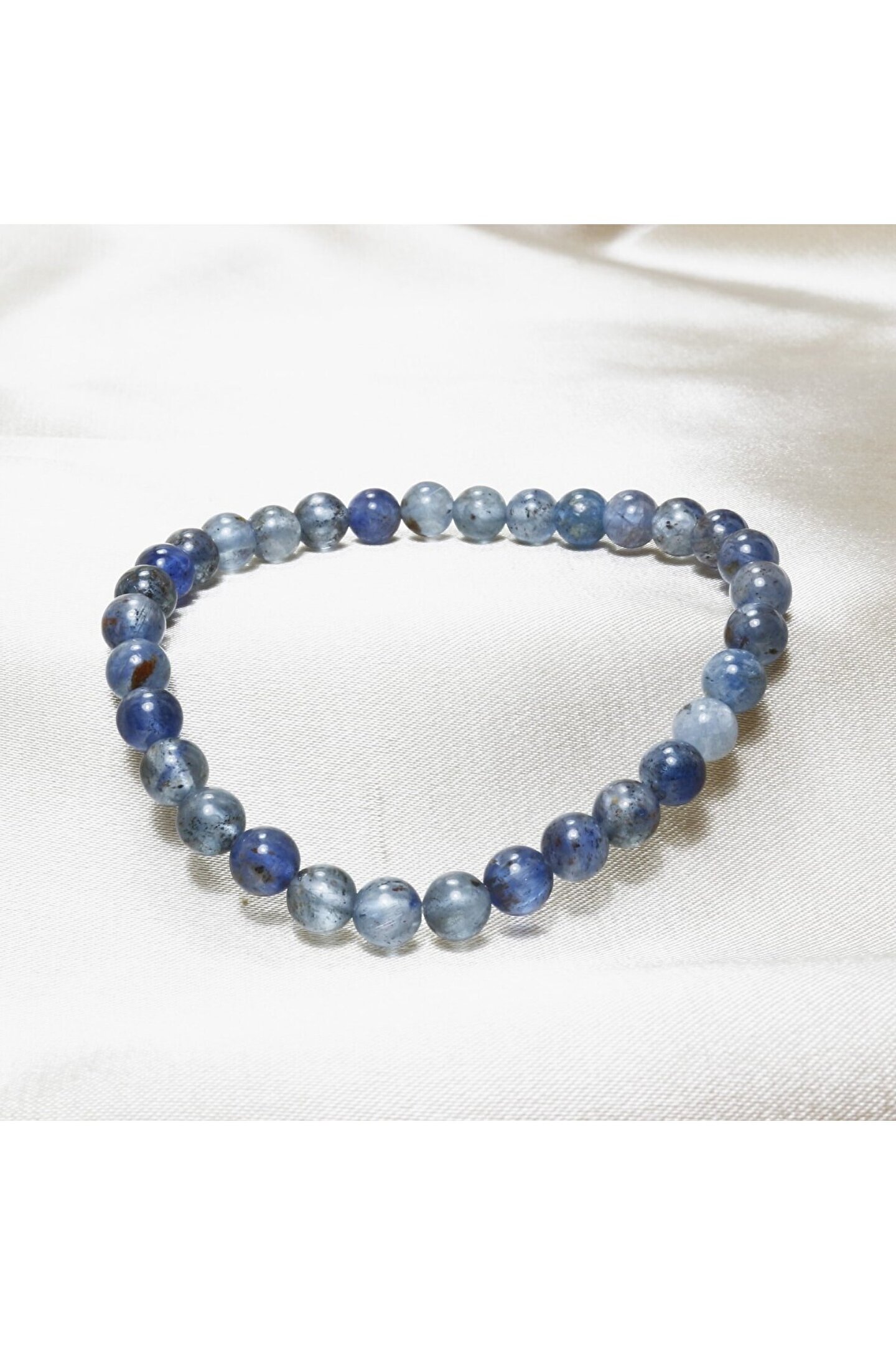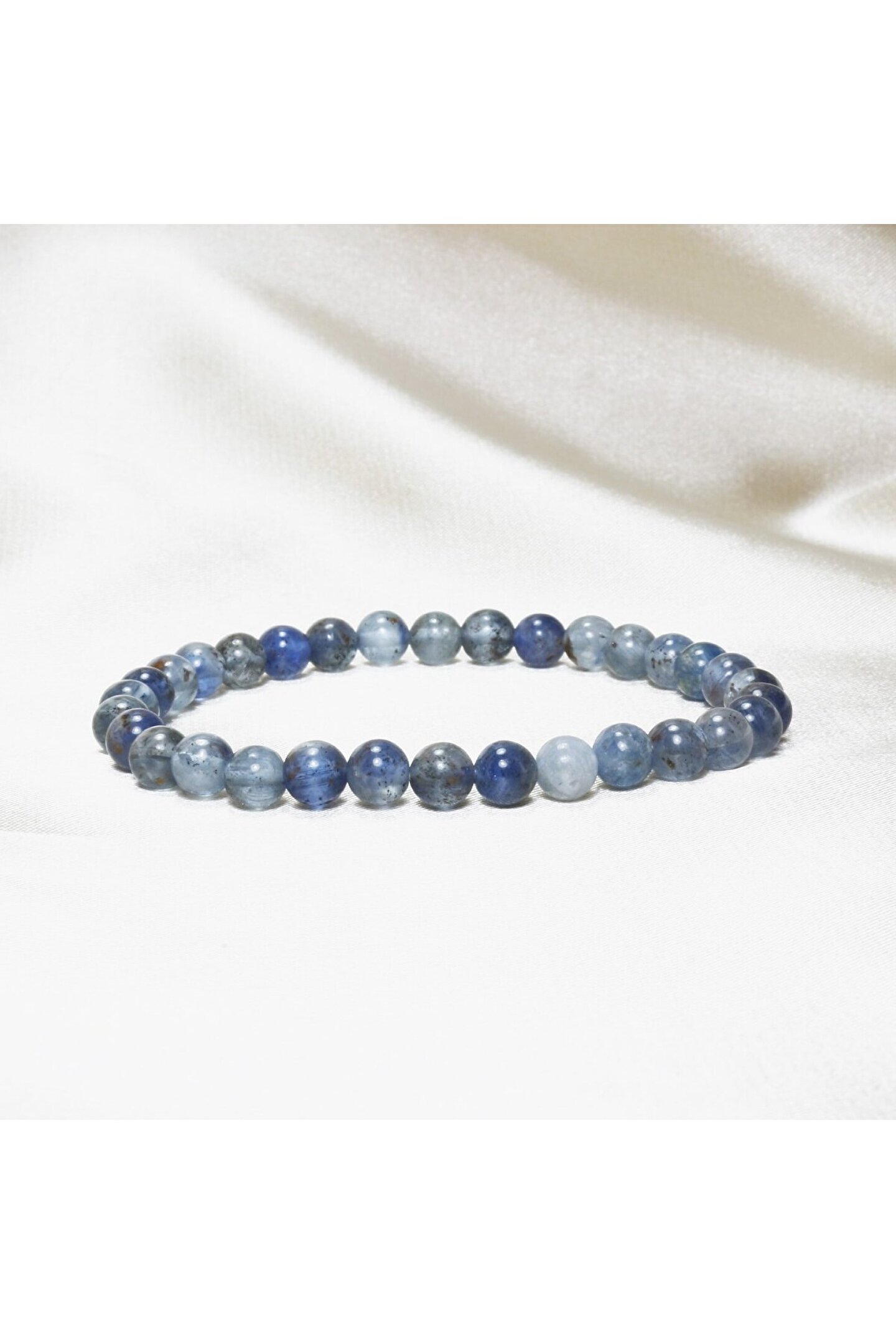 Doğal Kyanit taşı kullanılarak üretilmiş, şıklığı ve zarafeti bir arada sunan bileklik; 6 mm kalınlığındaki bu bileklik, günlük kullanım için idealdir ve rahat bir takma deneyimi sağlar; Doğal taş materyali sayesinde her bilek boyutuna uyum sağlayarak konforlu bir kullanım sunar; Kyanit taşı, benzersiz desenleri ve renkleriyle dikkat çekerken, bileklikteki zarif tasarımıyla göz alıcı bir aksesuar oluşturur;