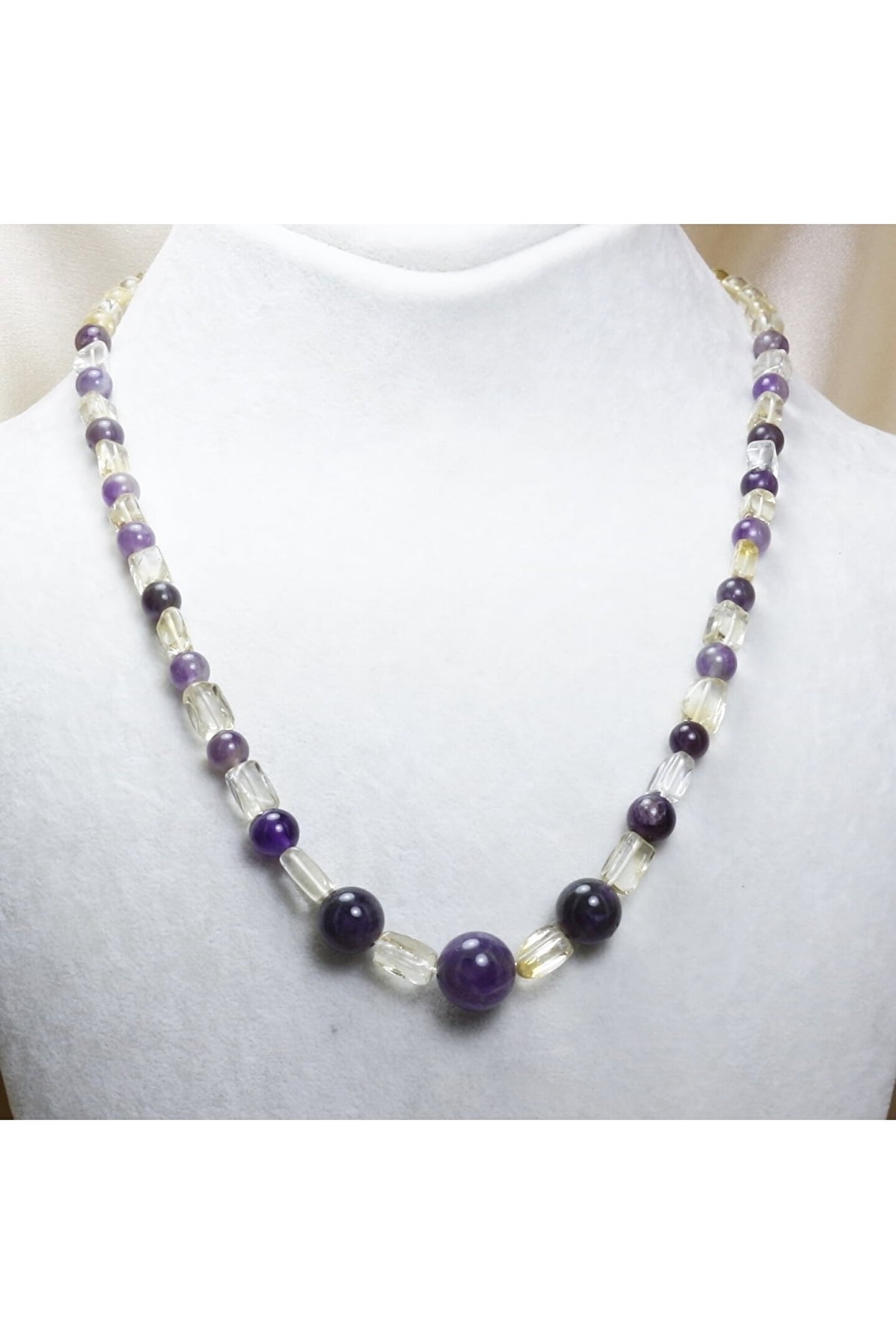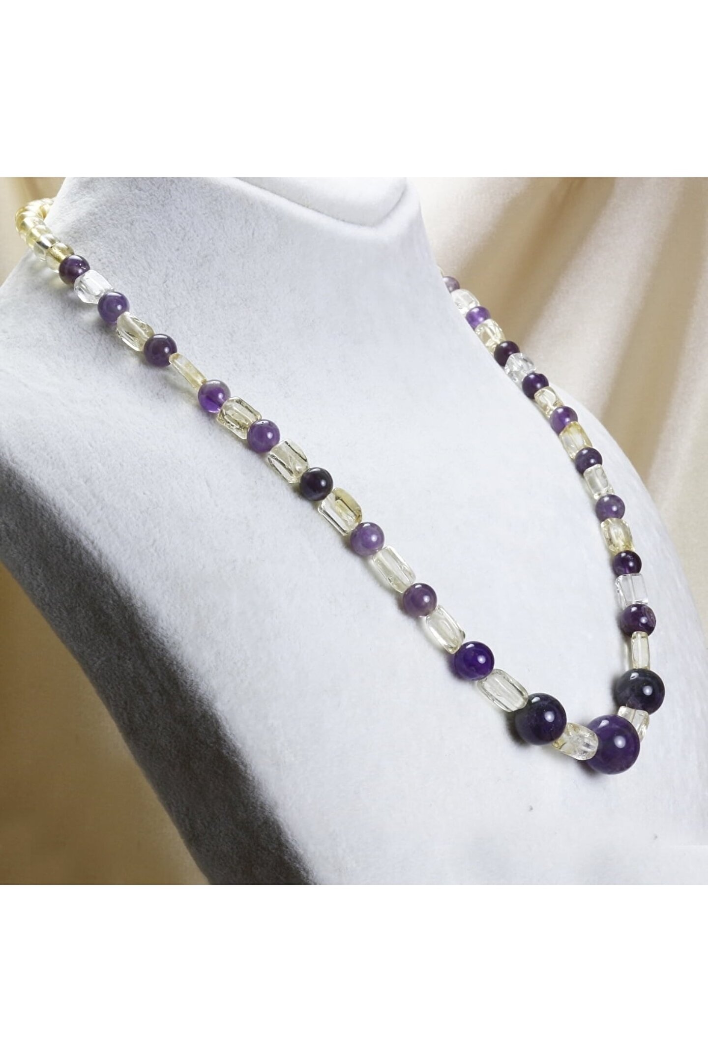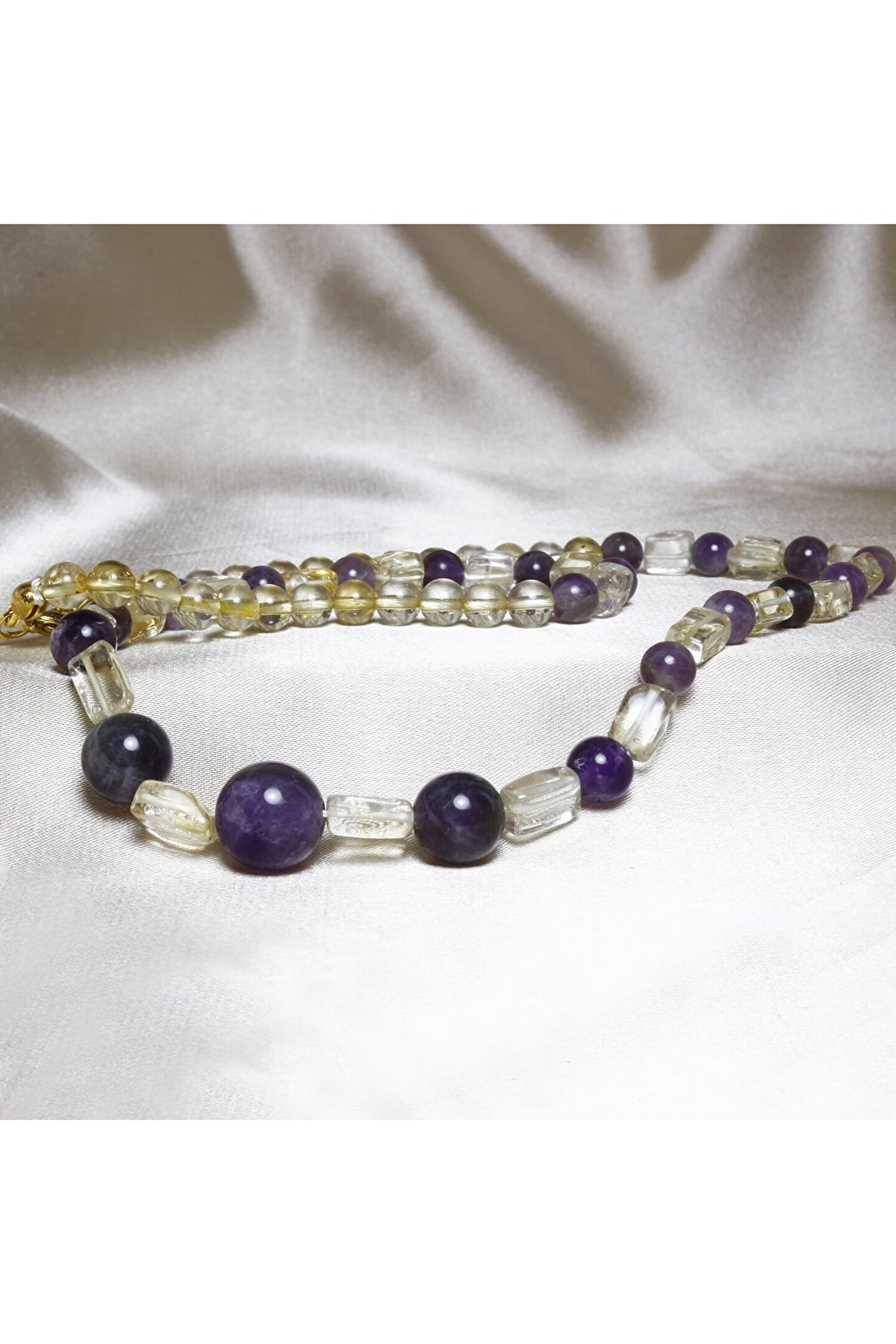 Doğal Sitrin taşı ve Ametist taşı kullanılarak tasarlanmış, şıklığı ve zarafeti bir arada sunan özel tasarım kolye; Her bir bileşeninde bulunan benzersiz desenler ve renk tonları ile göz alıcı bir görünüm sağlar; Doğal taş materyali sayesinde her kolye, eşsiz ve otantik bir dokunuşla öne çıkar; Hem günlük kullanım hem de özel günlerde tercih edilebilecek ideal aksesuar seçeneği;