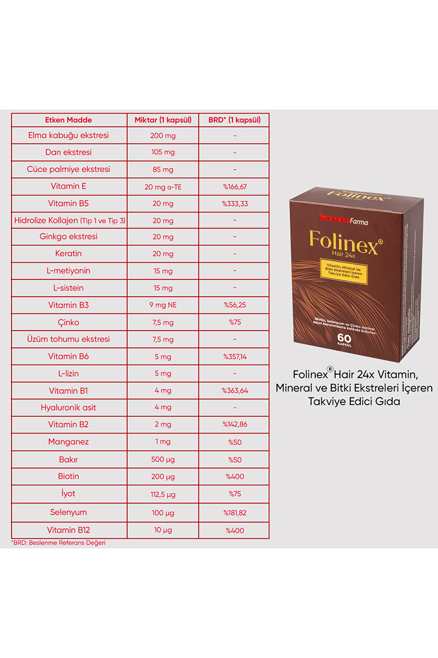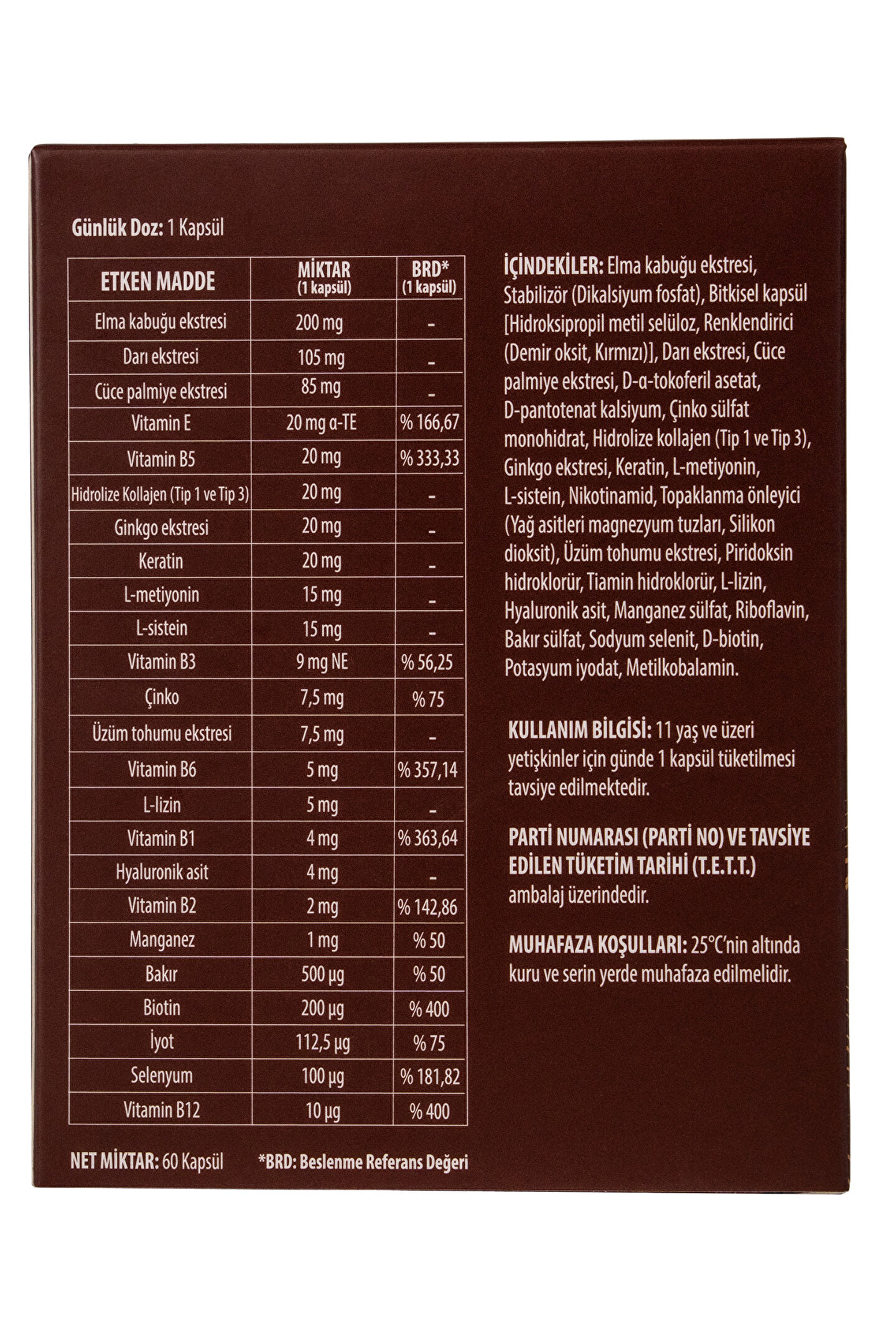 Miktar 1 kapsül (BRD*)