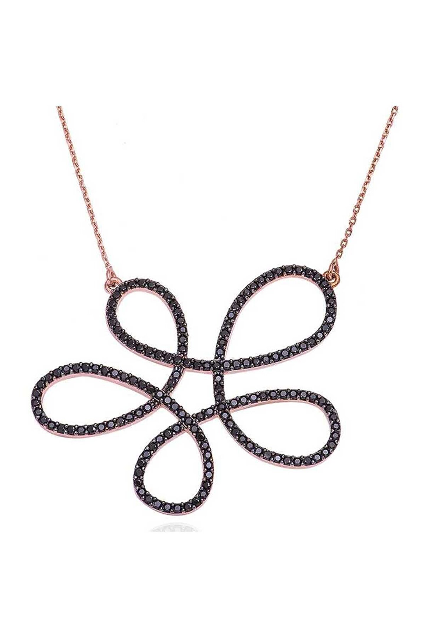 925 Ayar Gümüş Siyah Çiçek Kadın Gümüş Kolye