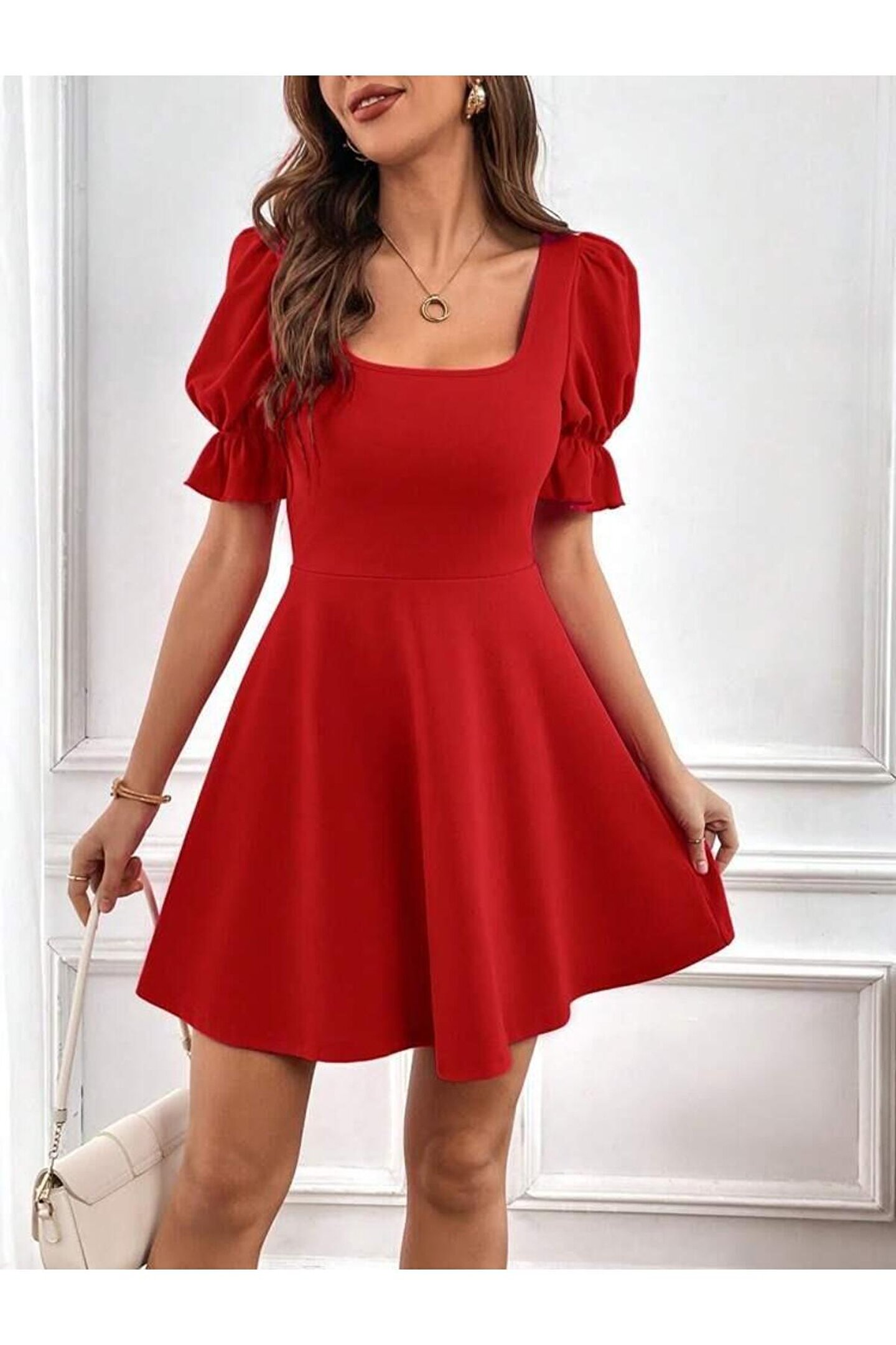 Kadın Kısa Kollu Kare Yakalı Kiloş Ithal Krep Elbise