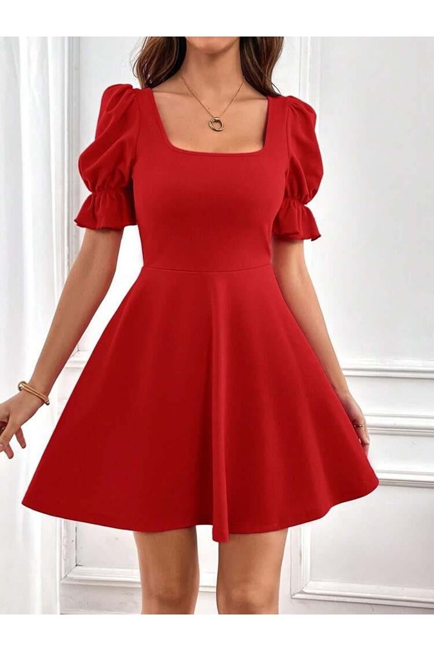Kadın Kısa Kollu Kare Yakalı Kiloş Ithal Krep Elbise