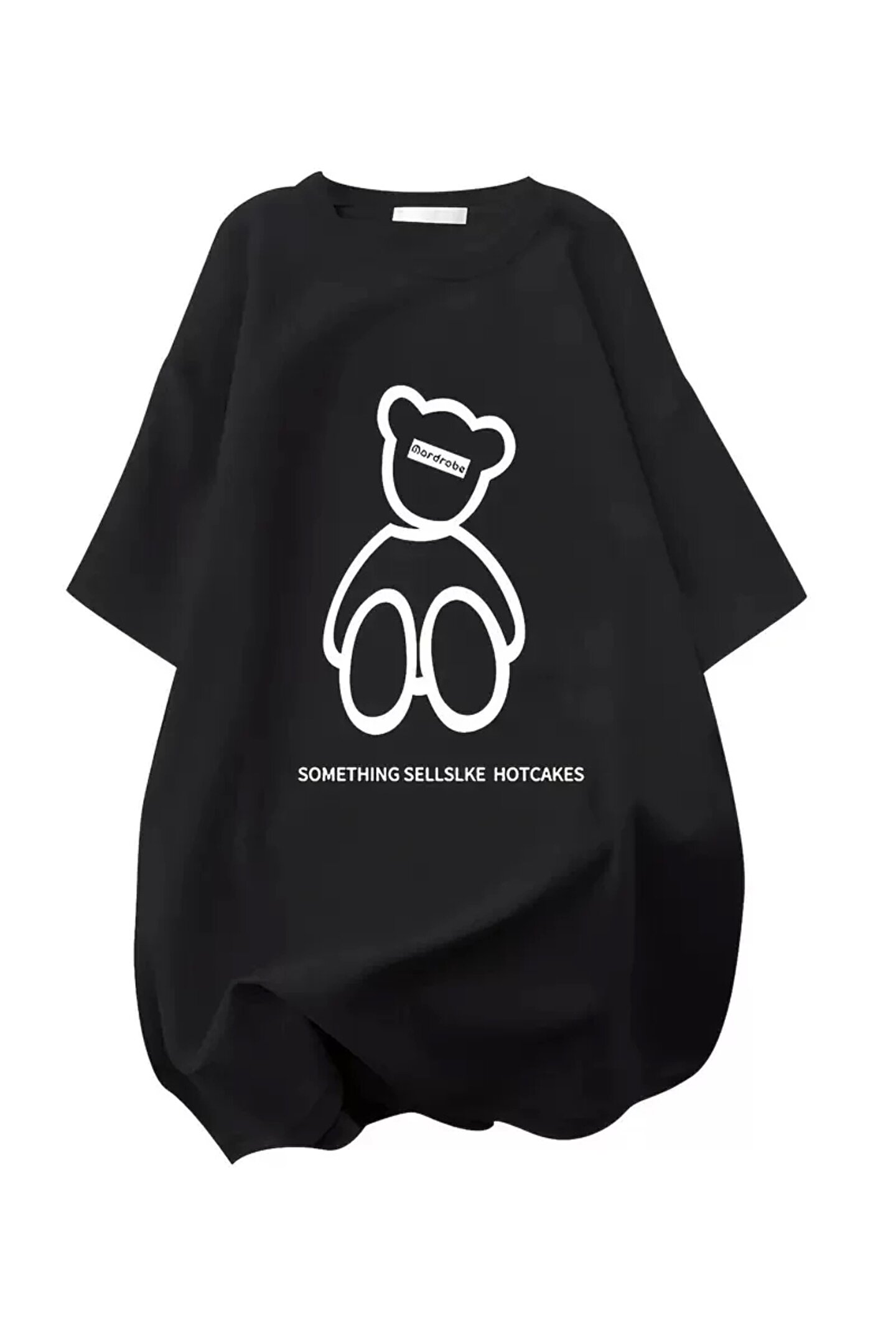 IVORA WEAR 201 Penye Compack Ön Arka Baskılı Oversize Bisiklet Yaka T-shirt - Siyah