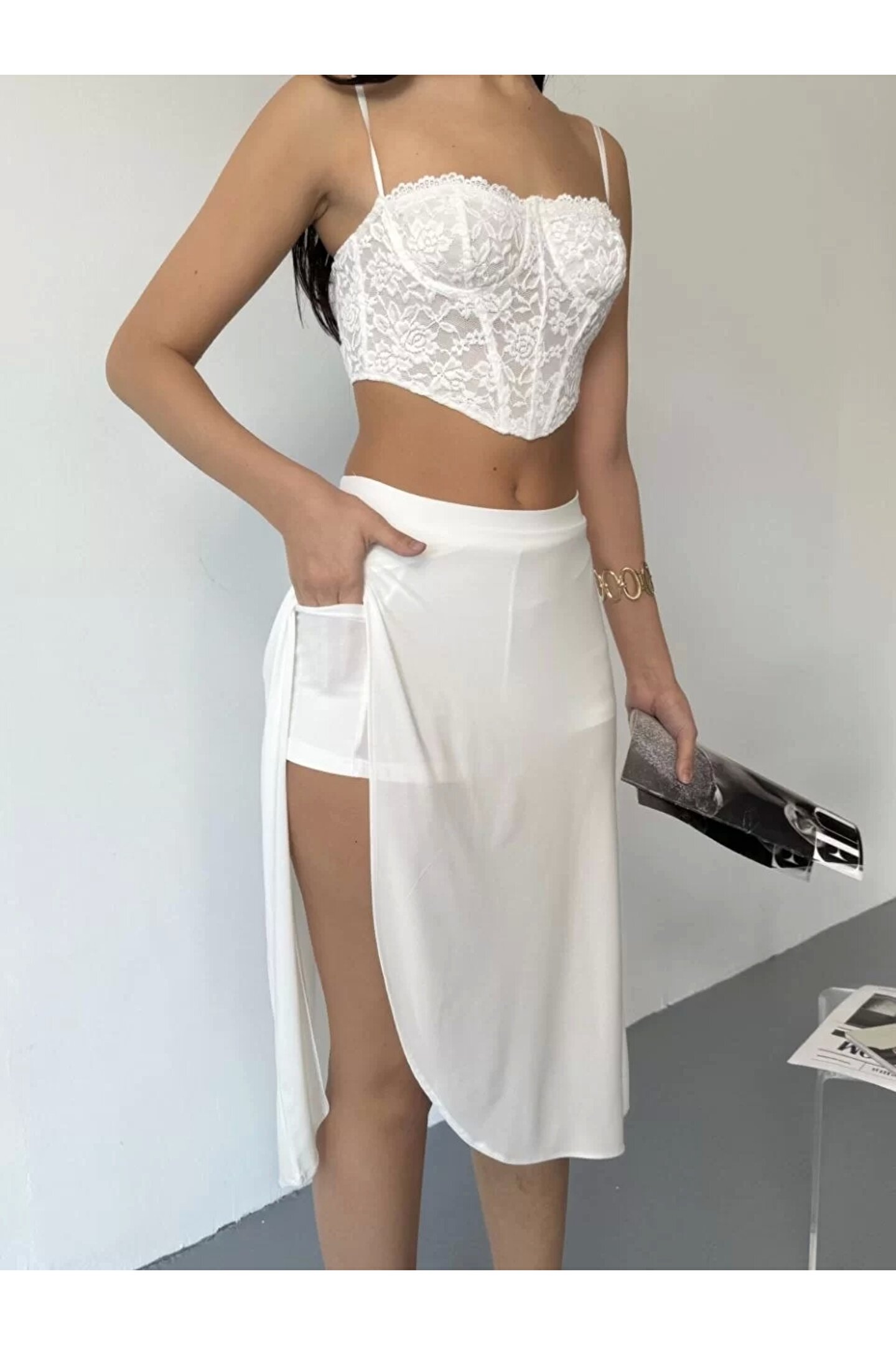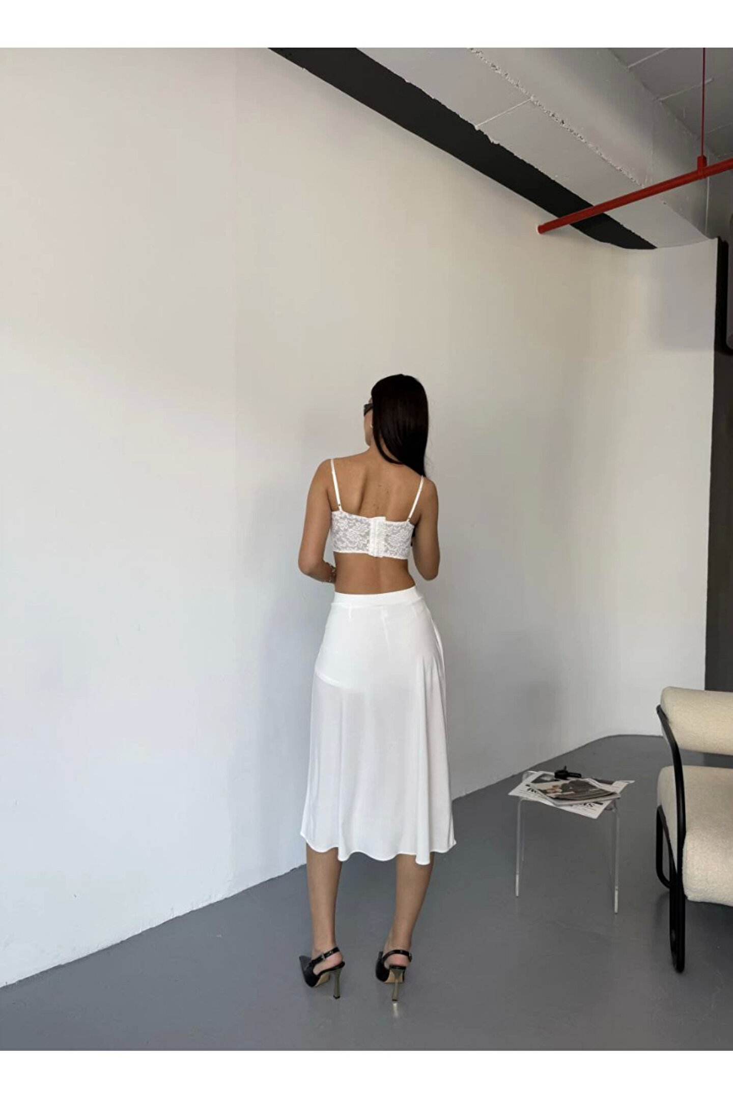 IVORA WEAR Çepli Şortlu Yırtmaçlı Etek - Beyaz