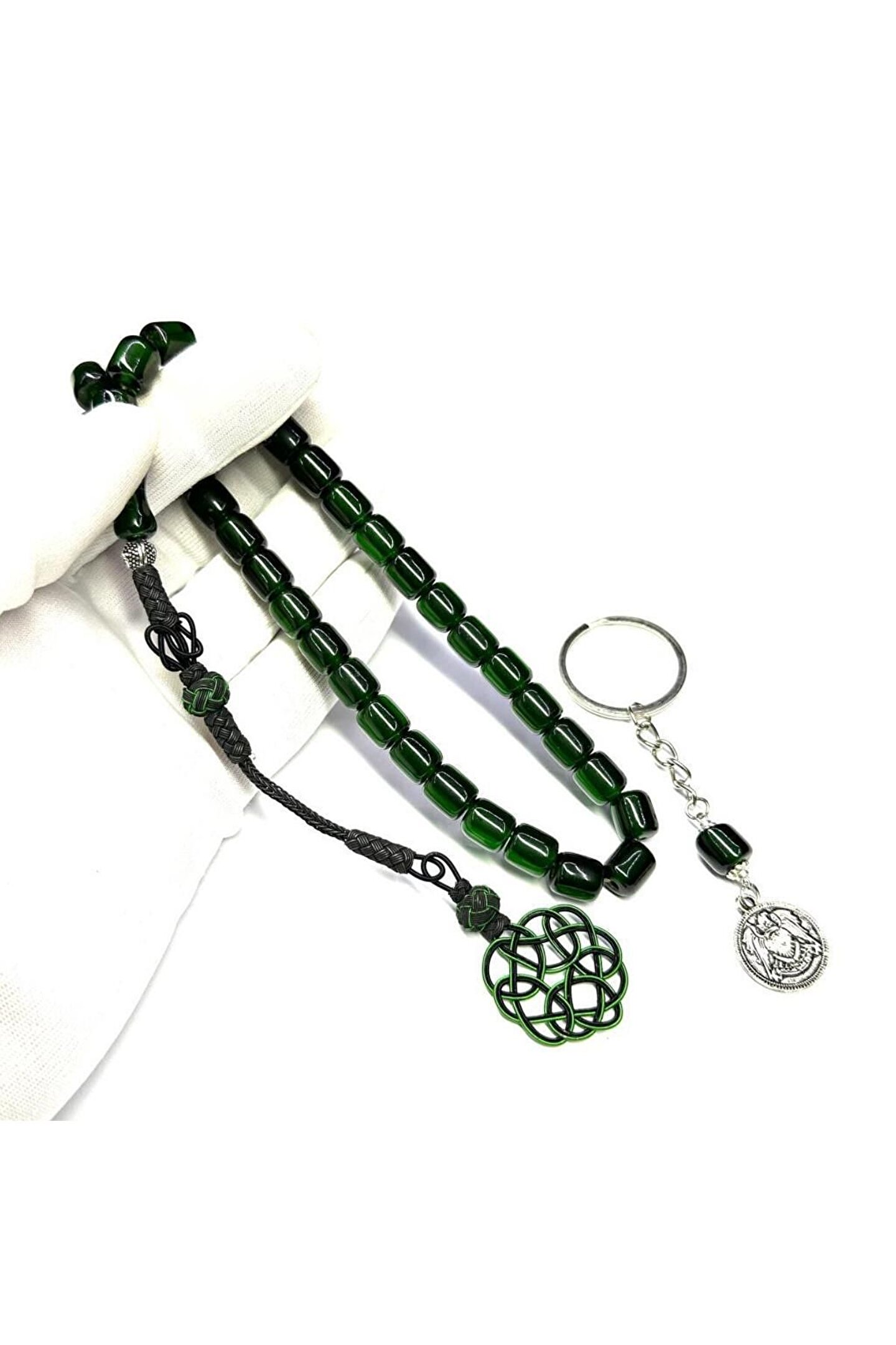 Anahtarlık Kombinli Kapsül Model Kazaz Püsküllü 9-10mm Ateş Sıkma Kehribar Tesbih