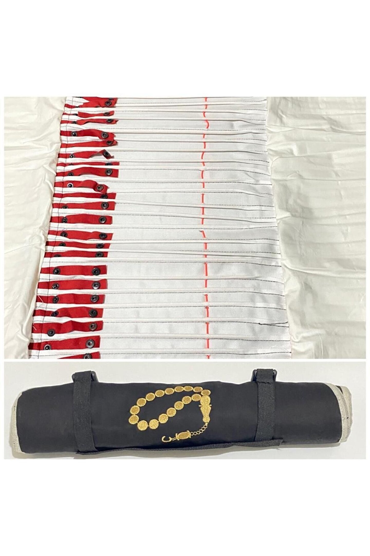 Içi-dışı Kumaş Dikişli, 25 Adet Kilit Kancalı Kitlenen Tesbih Rulo