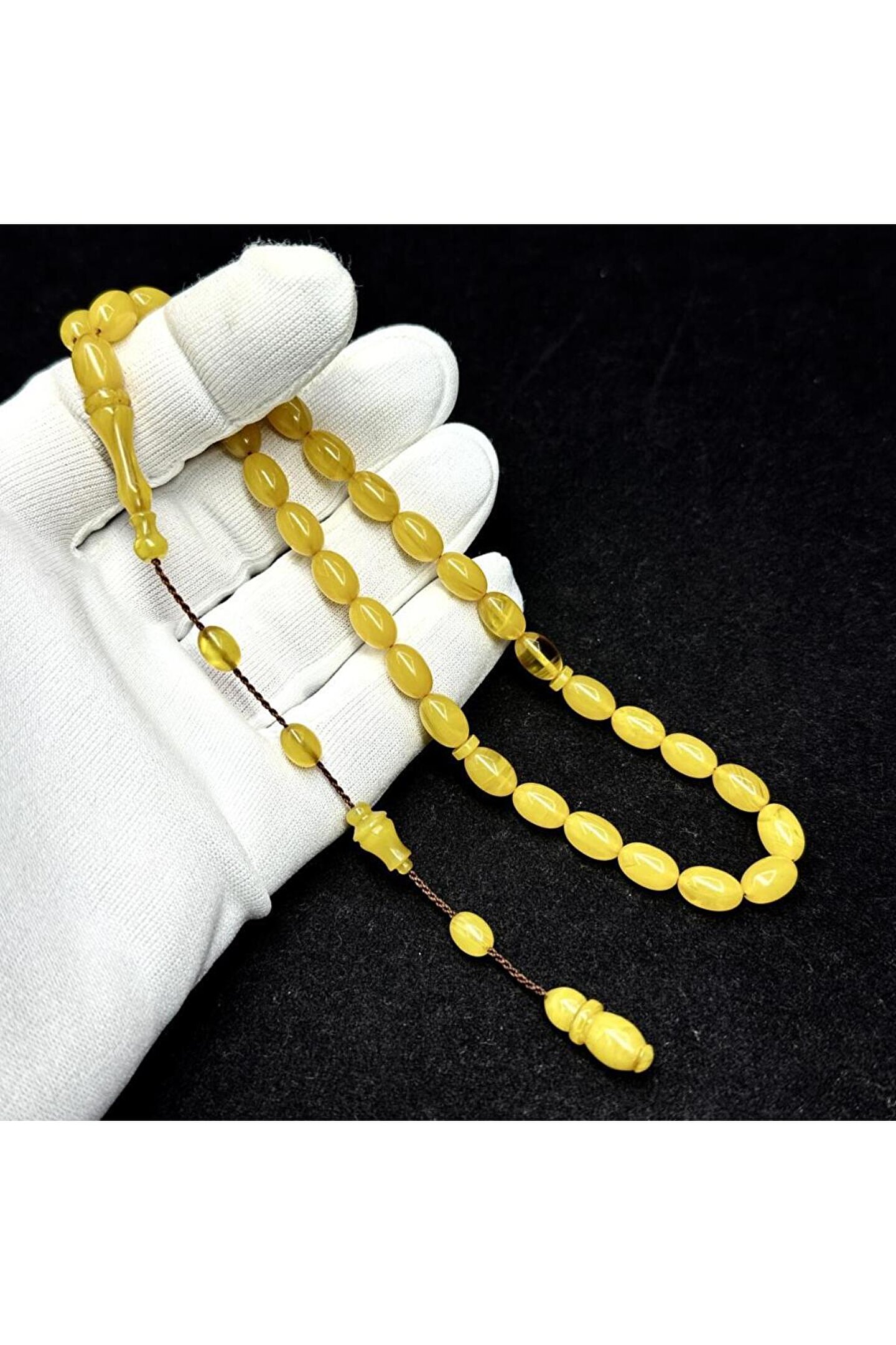 İzmur Usta İşi Sikkeli Badem Model 7-10mm Sistemli Hareli Sıkma Kehribar Tesbih