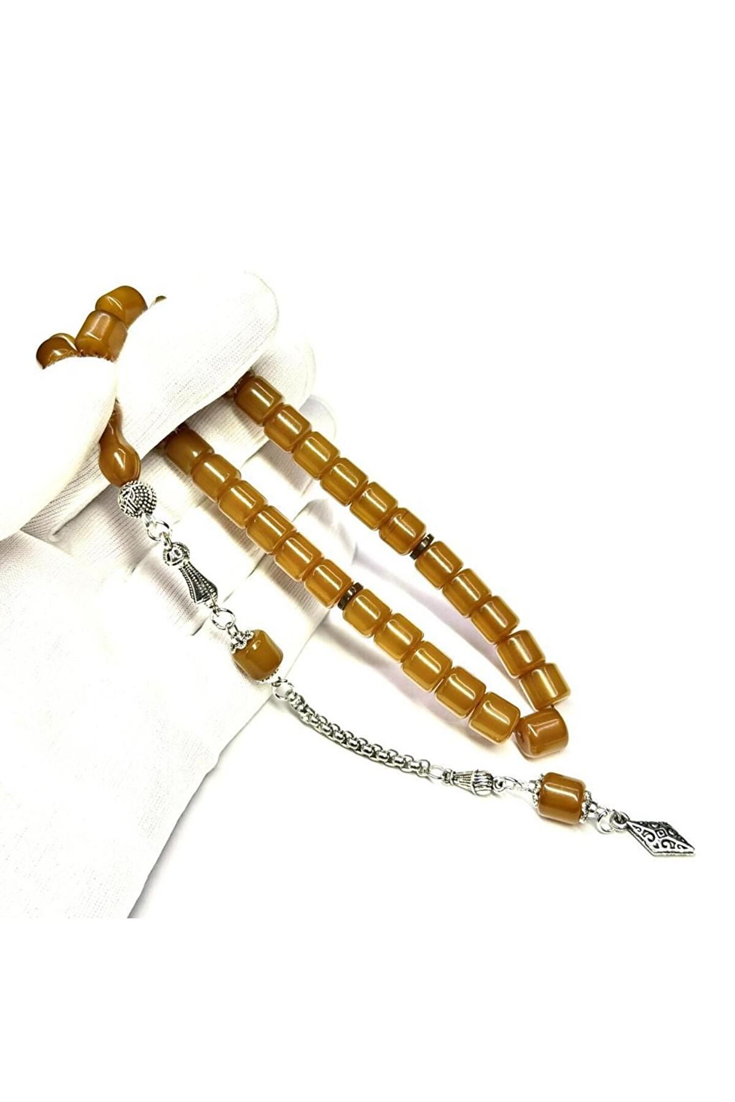 Kesme Model Püsküllü 9-9mm Buğulu Sıkma Ateş Kehribar Tesbih