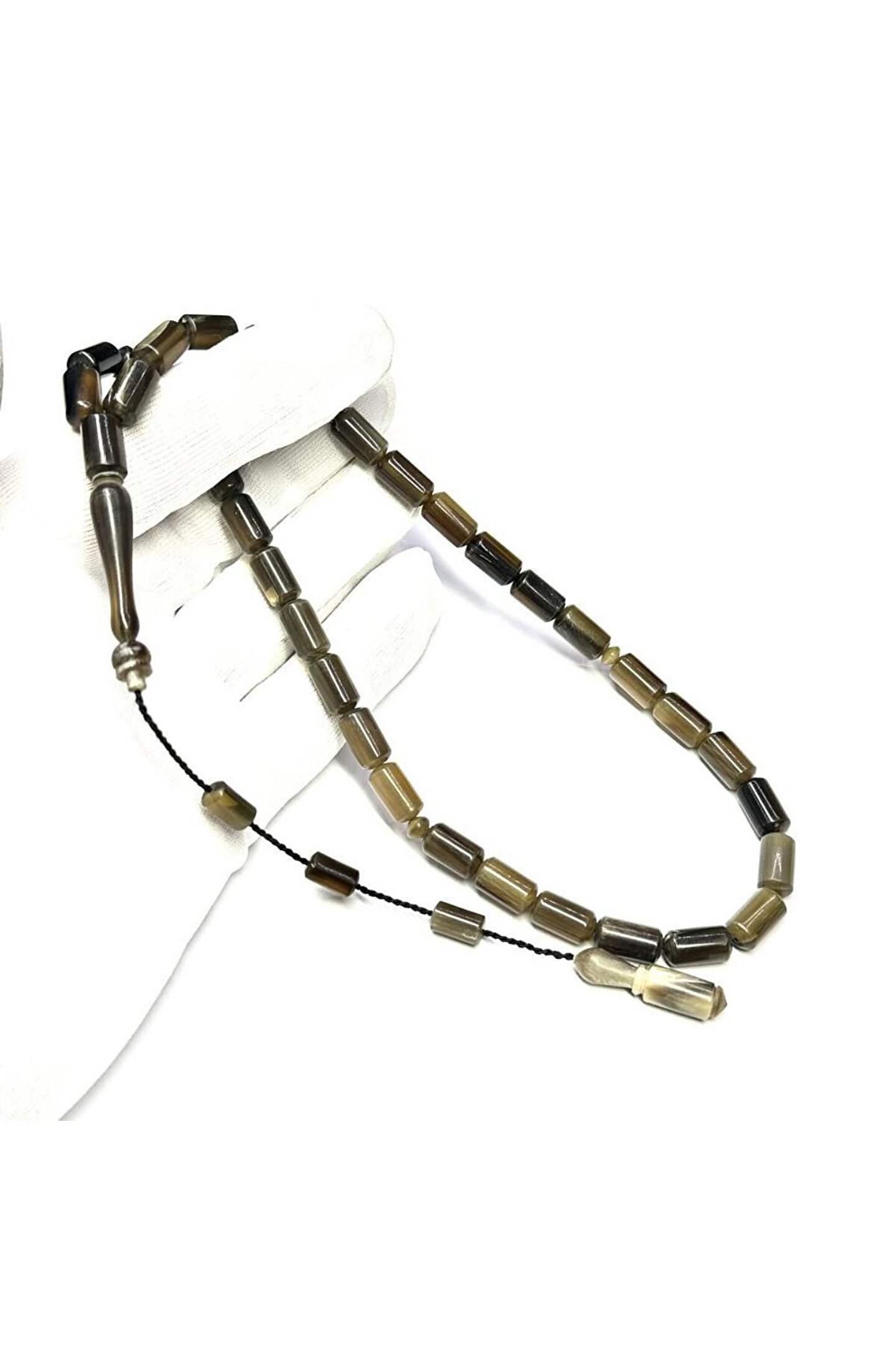 Uçlu Kesme Model Sistemli 7-12,5mm Fosil Malzeme Buffalo Boynuzu Usta İşi Tesbih