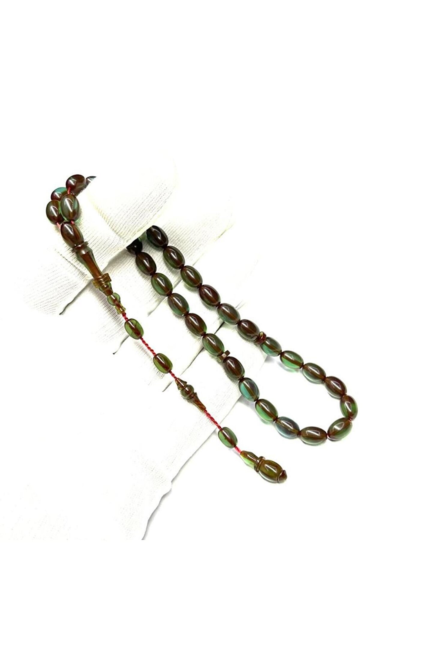 Usta İşi Sistemli İmamesi Halkalı Beyzi Model 6-9mm Sıkma Ateş Kehribar Tesbih