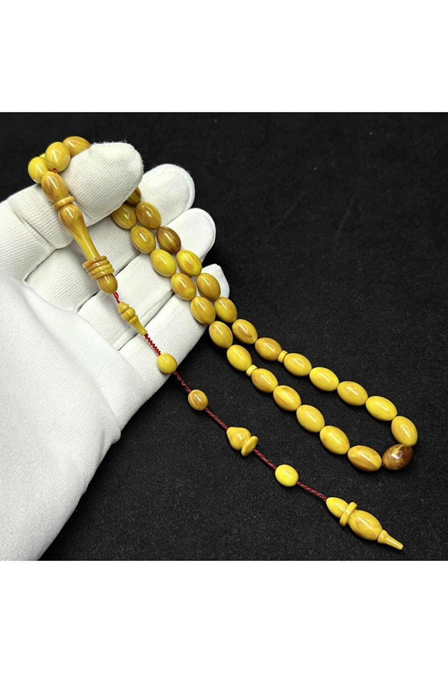 Usta İşi Sistemli İmamesi Halkalı Beyzi Model 8-12mm Hareli Sıkma Kehribar Tesbih