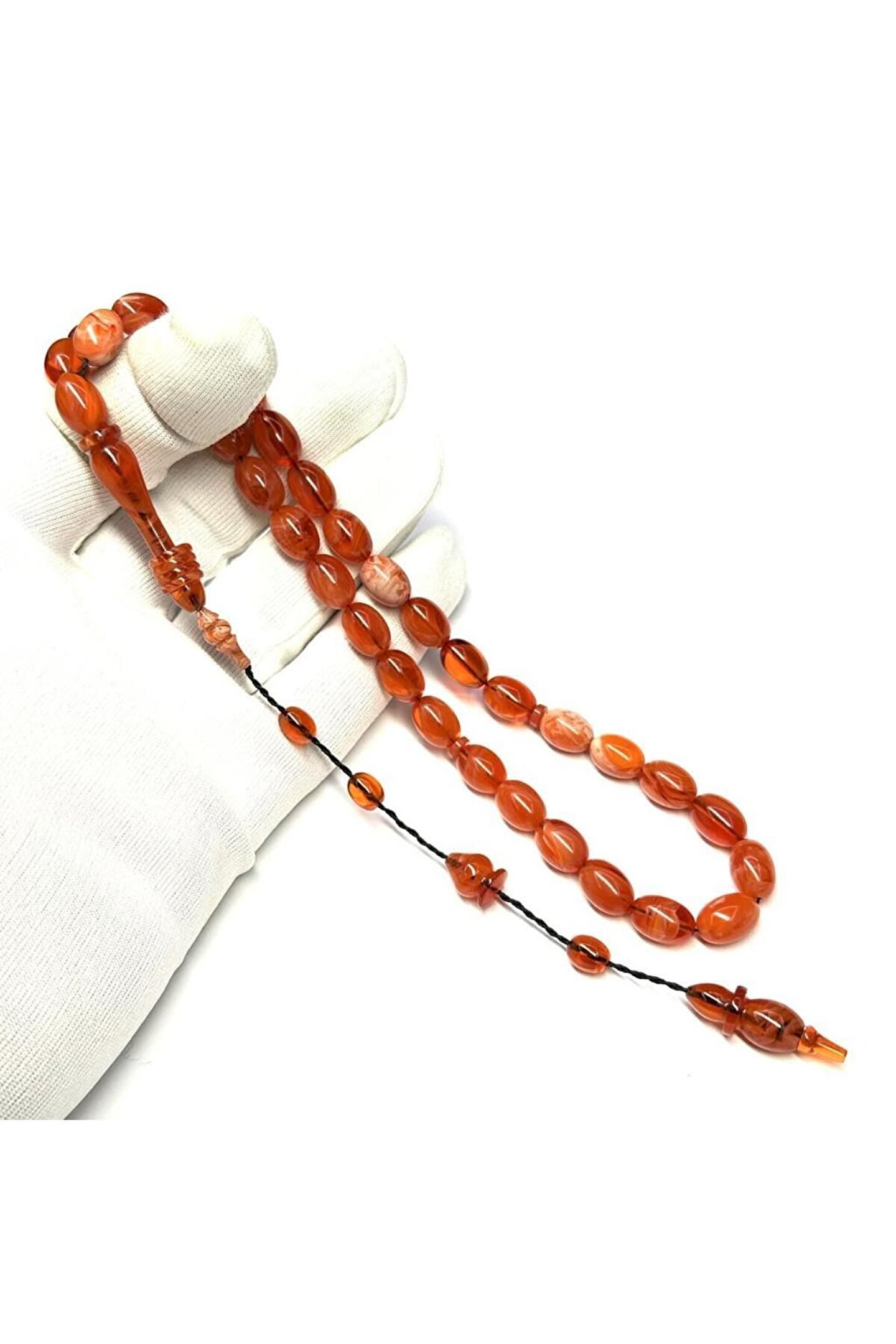 Usta İşi Sistemli İmamesi Halkalı Beyzi Model 8-12mm Hareli Sıkma Kehribar Tesbih