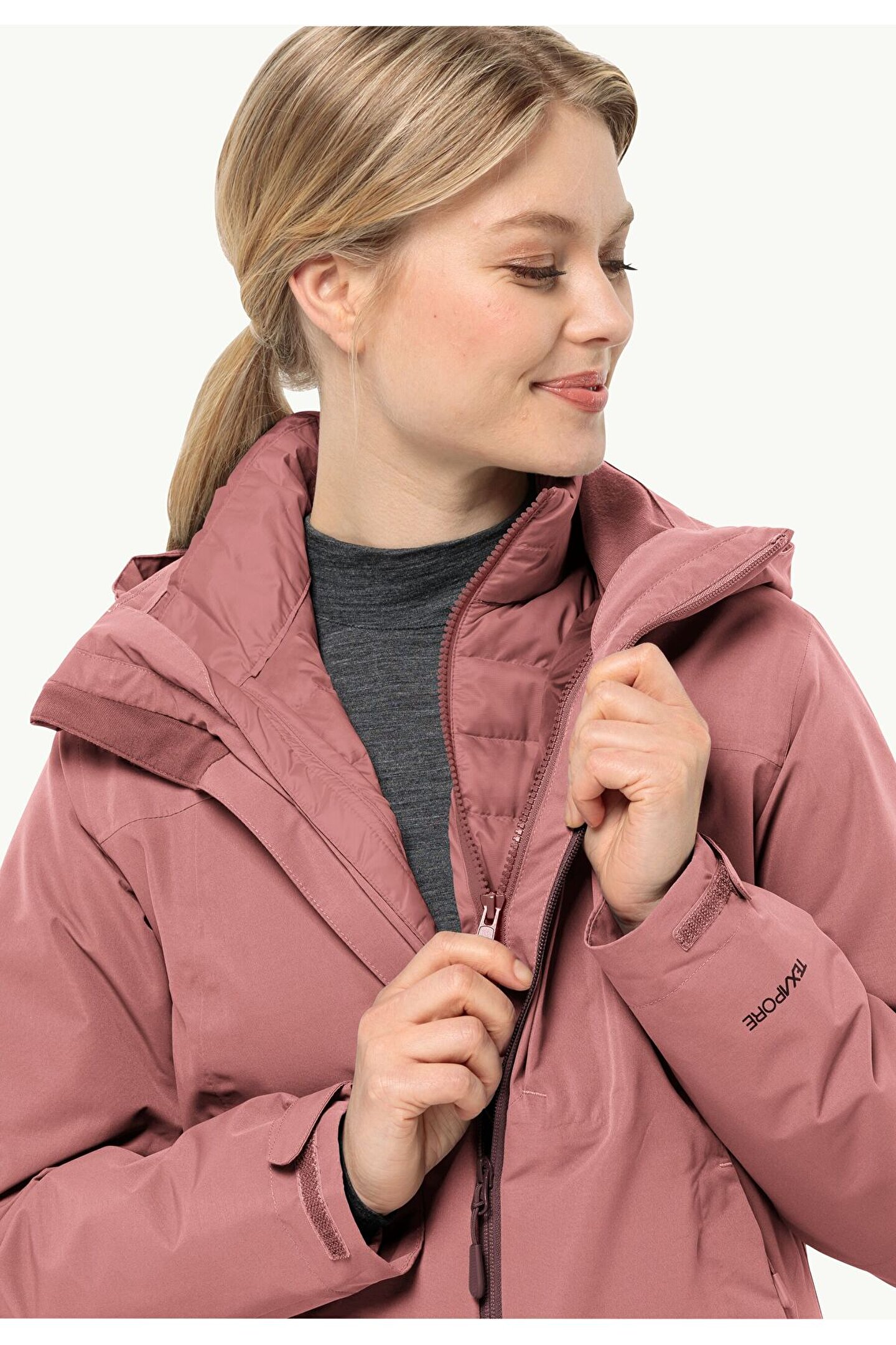 - windproof, highly water-repellent, breathable