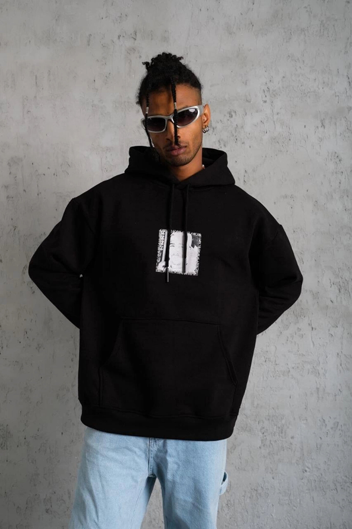 JARDİN ALLURE Erkek Ön Arka Baskılı Kapşonlu Sweat - Siyah