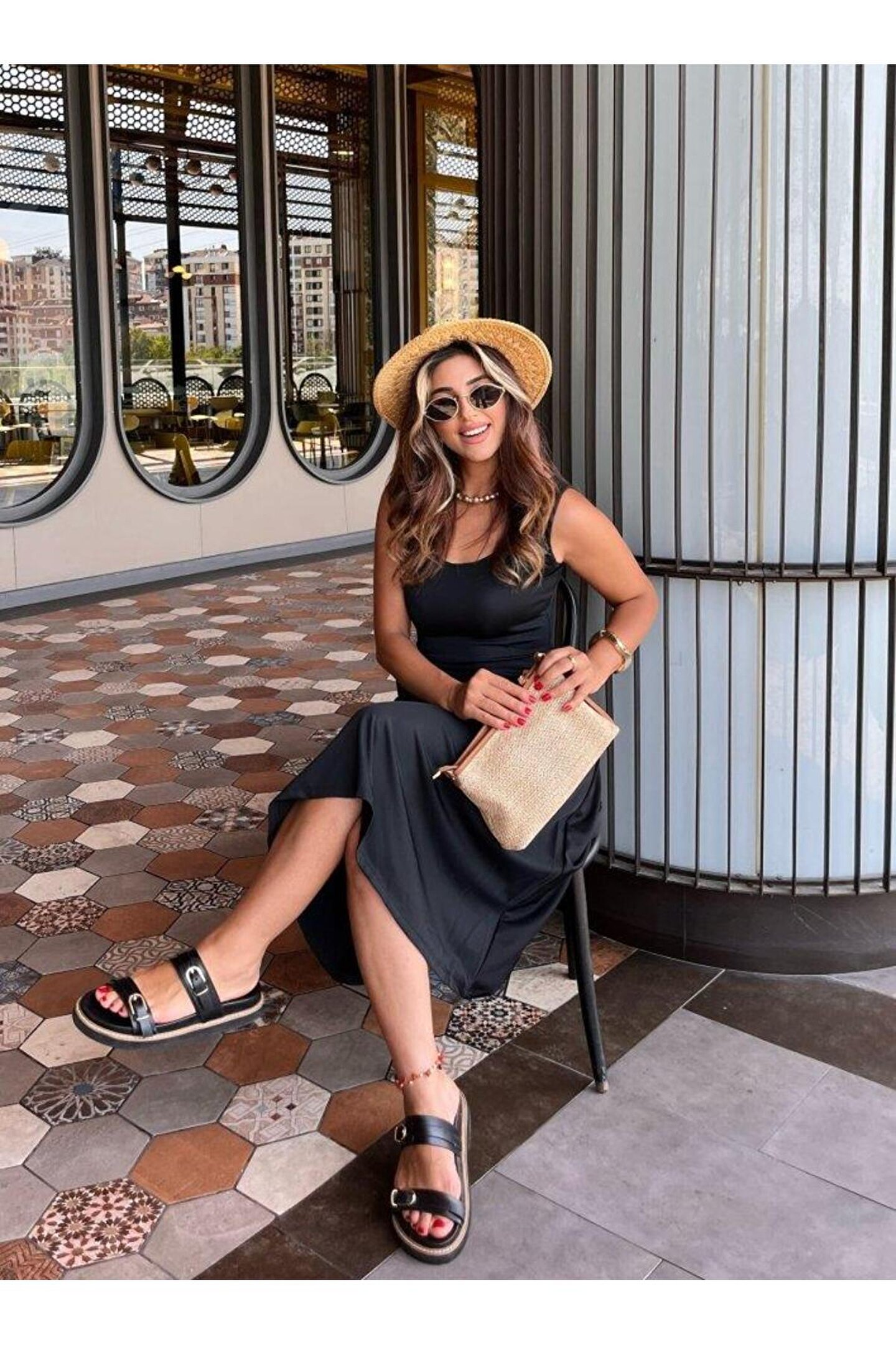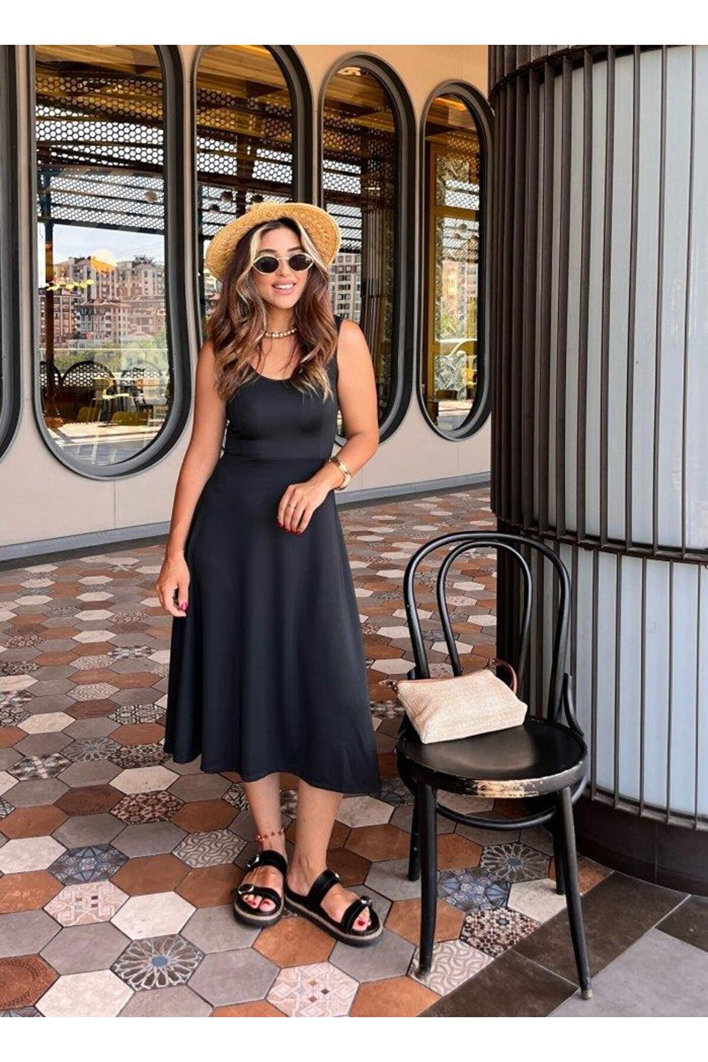 Kadın Askılı Kare Yakalı Midi Ithal Krep Elbise