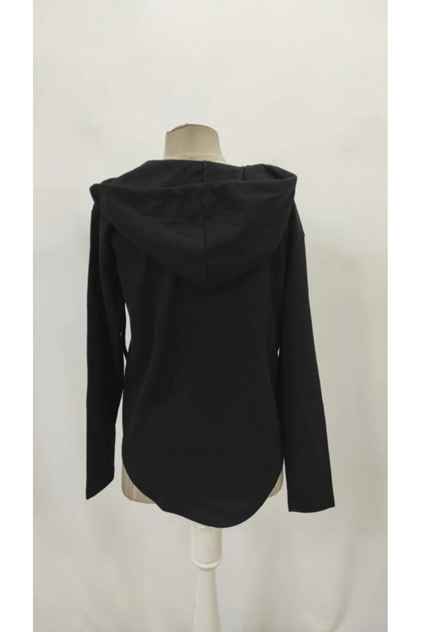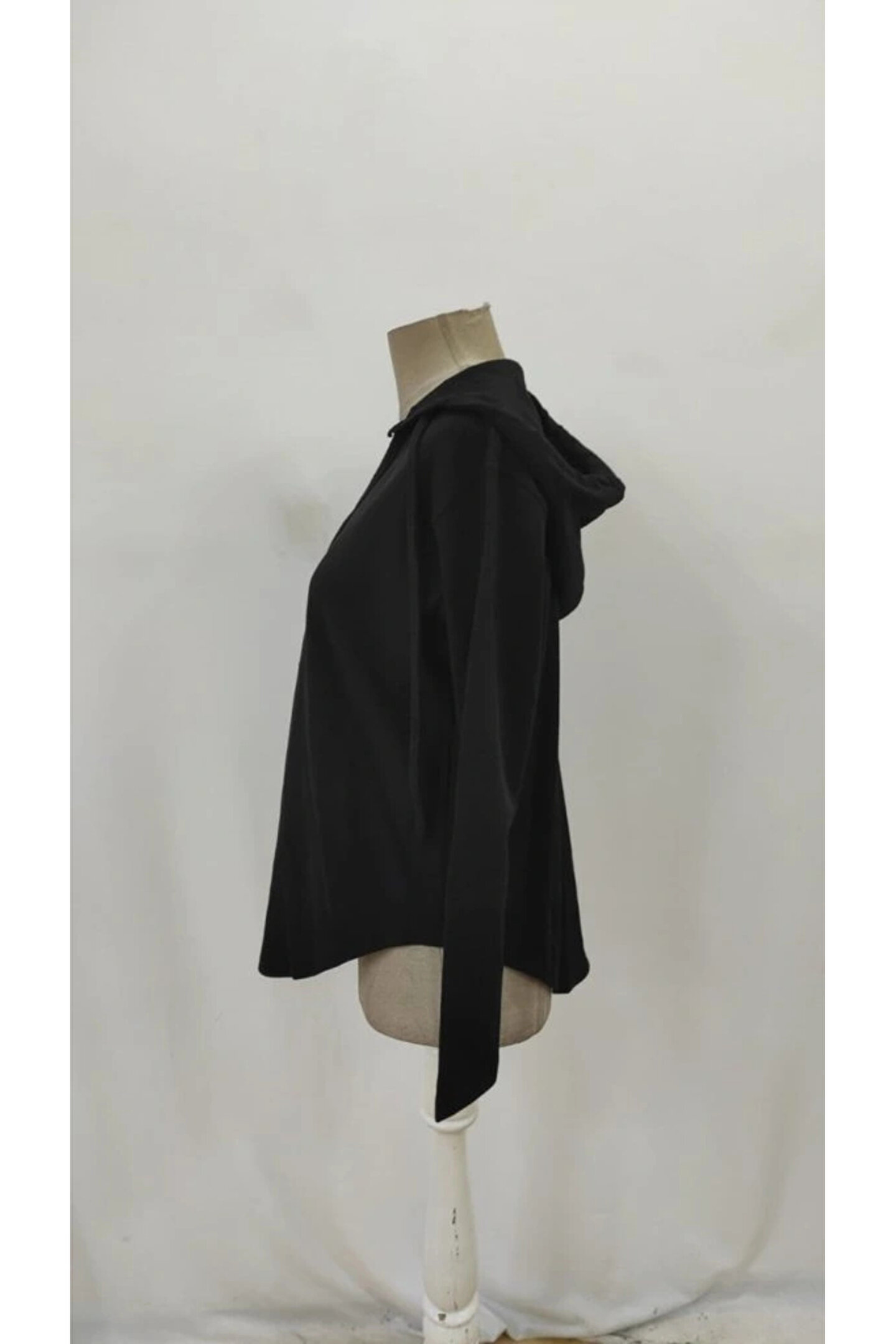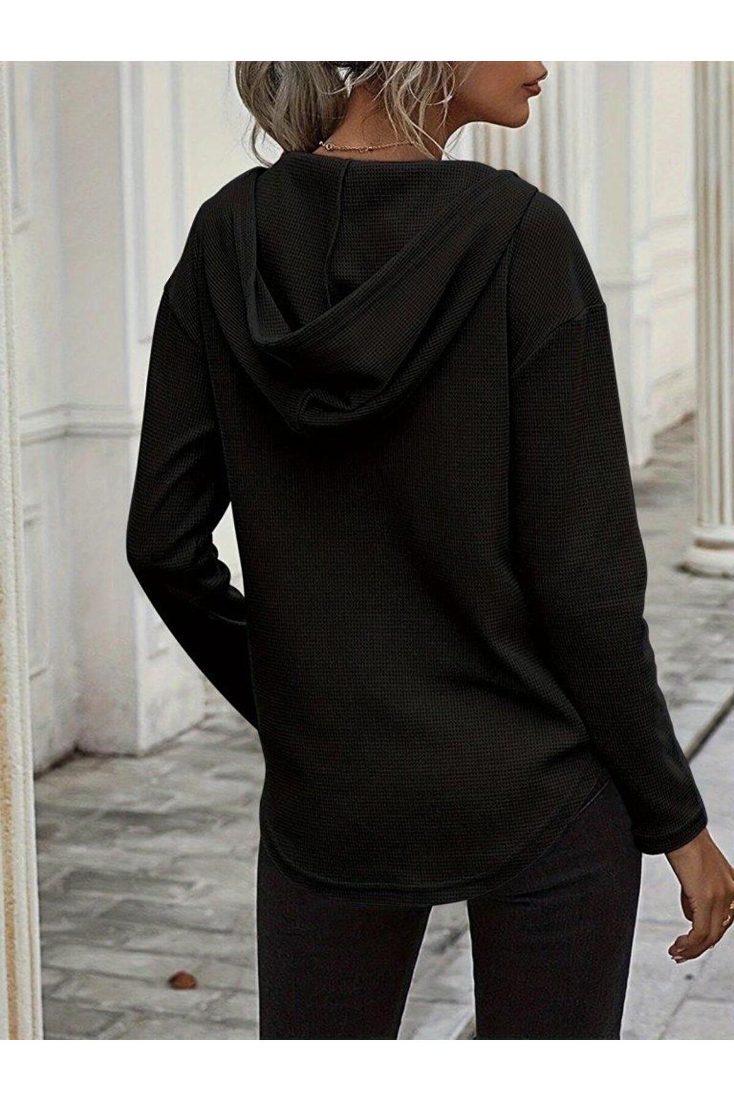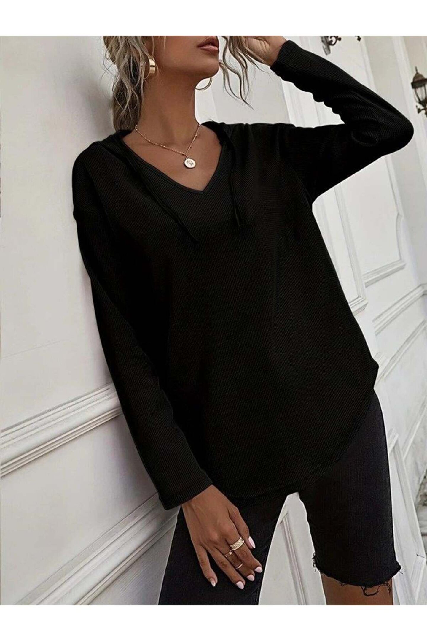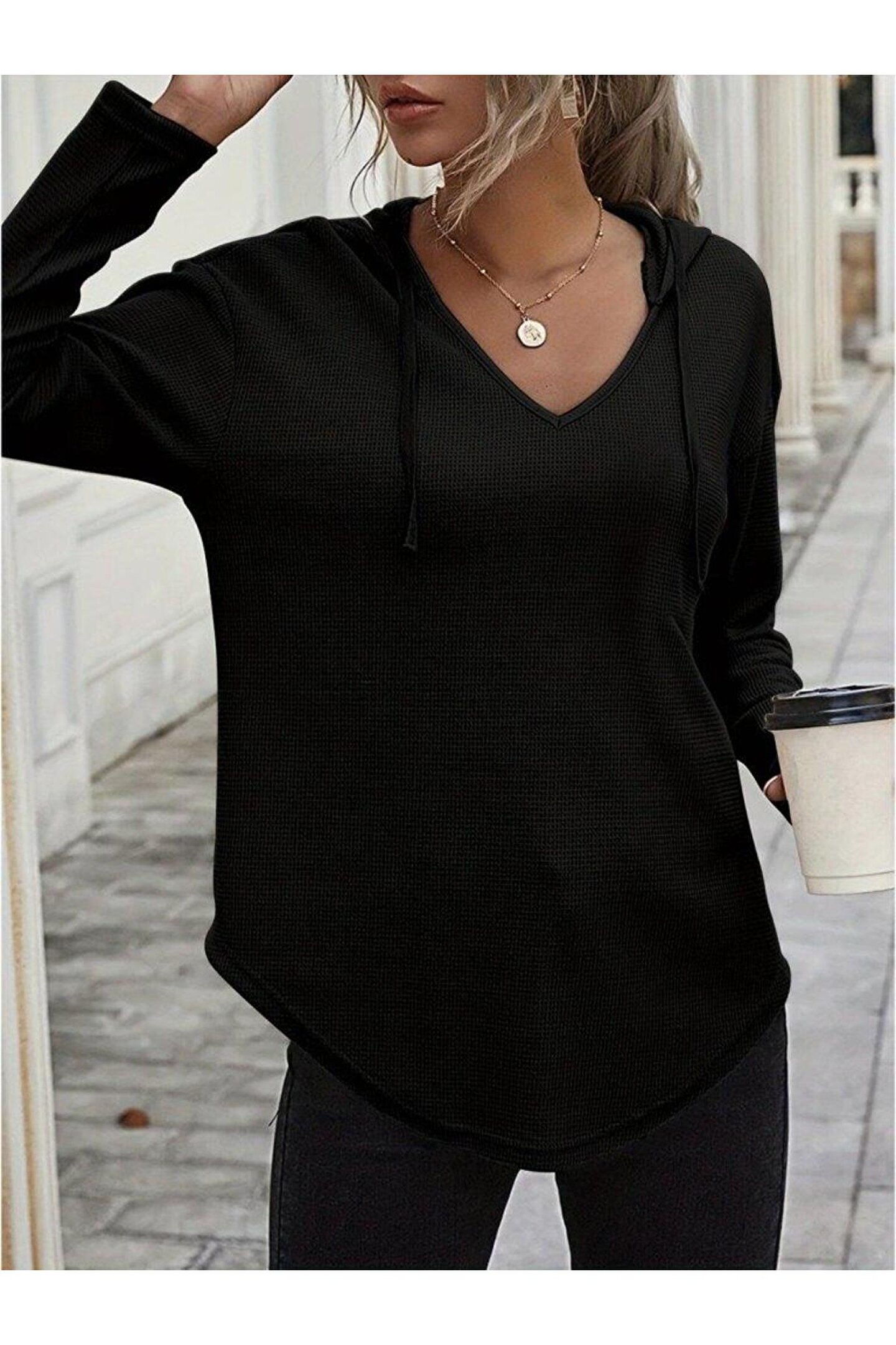 Kadın Uzun Kollu V Yakalı Kapşonlu Waffle Bluz