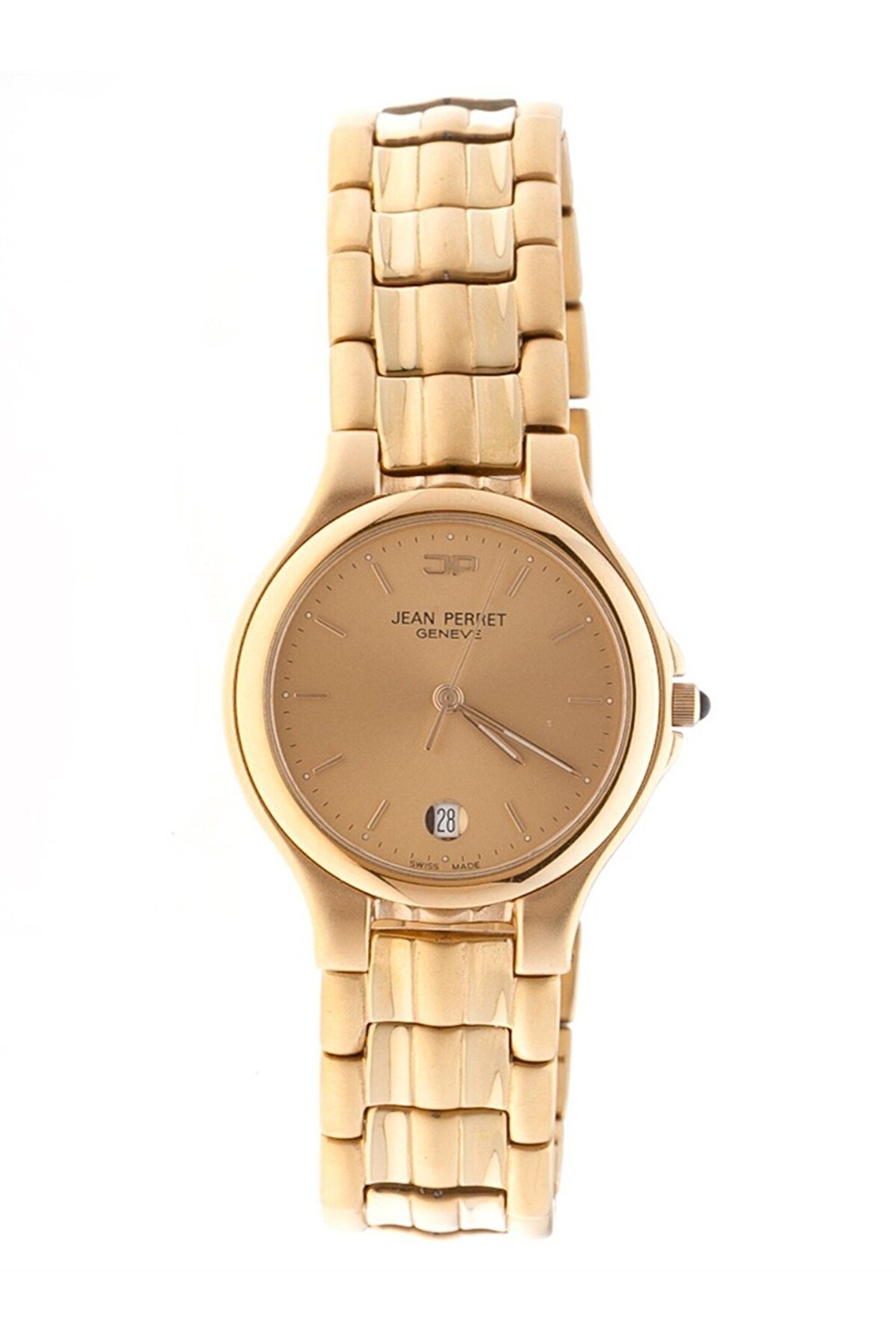 Markası: Jean Perret Cinsiyet: Erkek Kasa Cinsi: Çelik Kasa Rengi: Sarı Kasa Ebatı: 35mm Kordon Cinsi: Çelik Kordon Rengi: Sarı Cam Cinsi: Safir Makina: Analoğ Eta Makina Kadran Rengi: Sarı Takvim Var Su geçirmemezlik: 3Atm