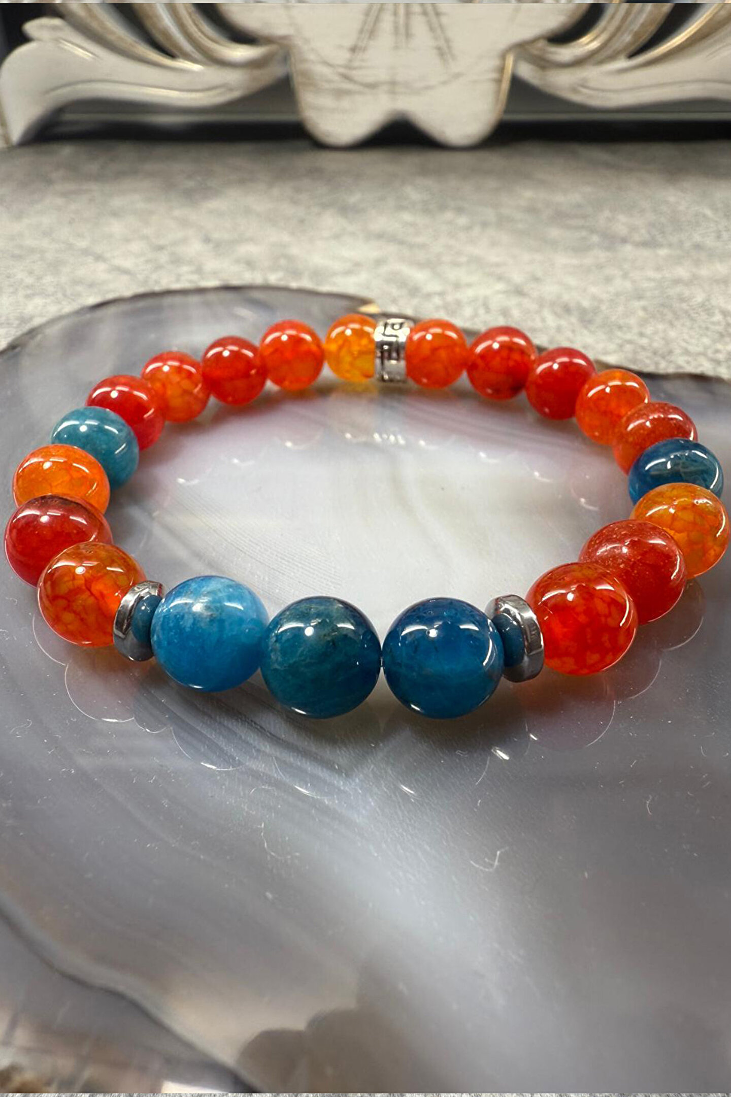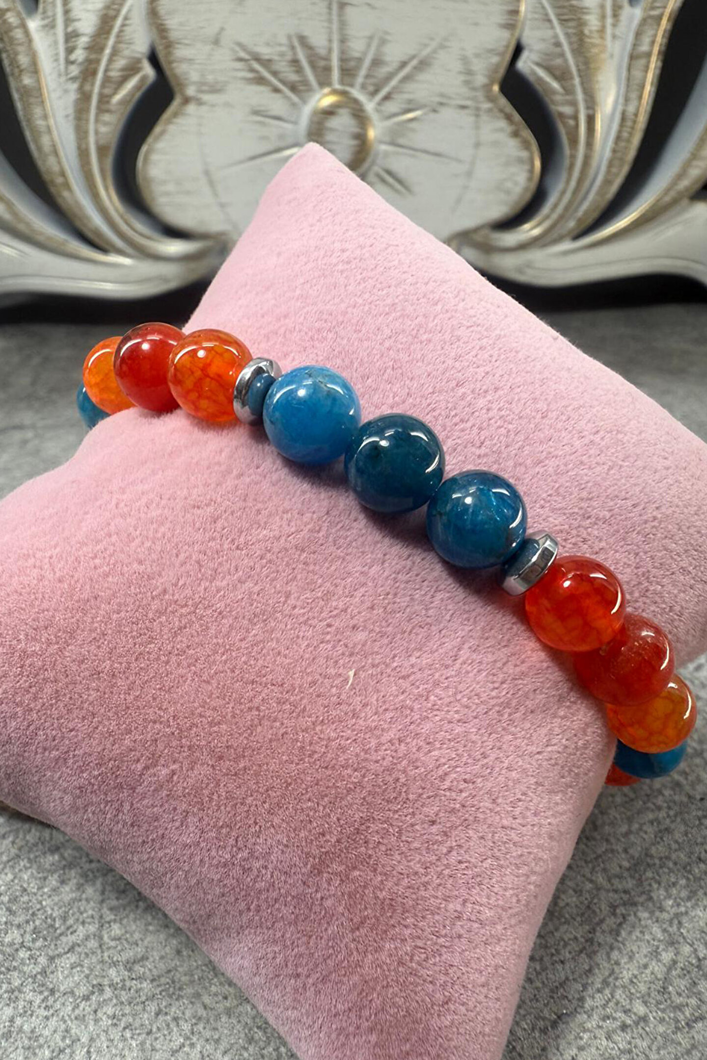 "Eşsiz Ateş Akik ve Apatit taşlarından özel tasarım bileklik. Doğal taşların enerjisiyle stilinizi tamamlayın. Anlamlı hediye seçeneği."
