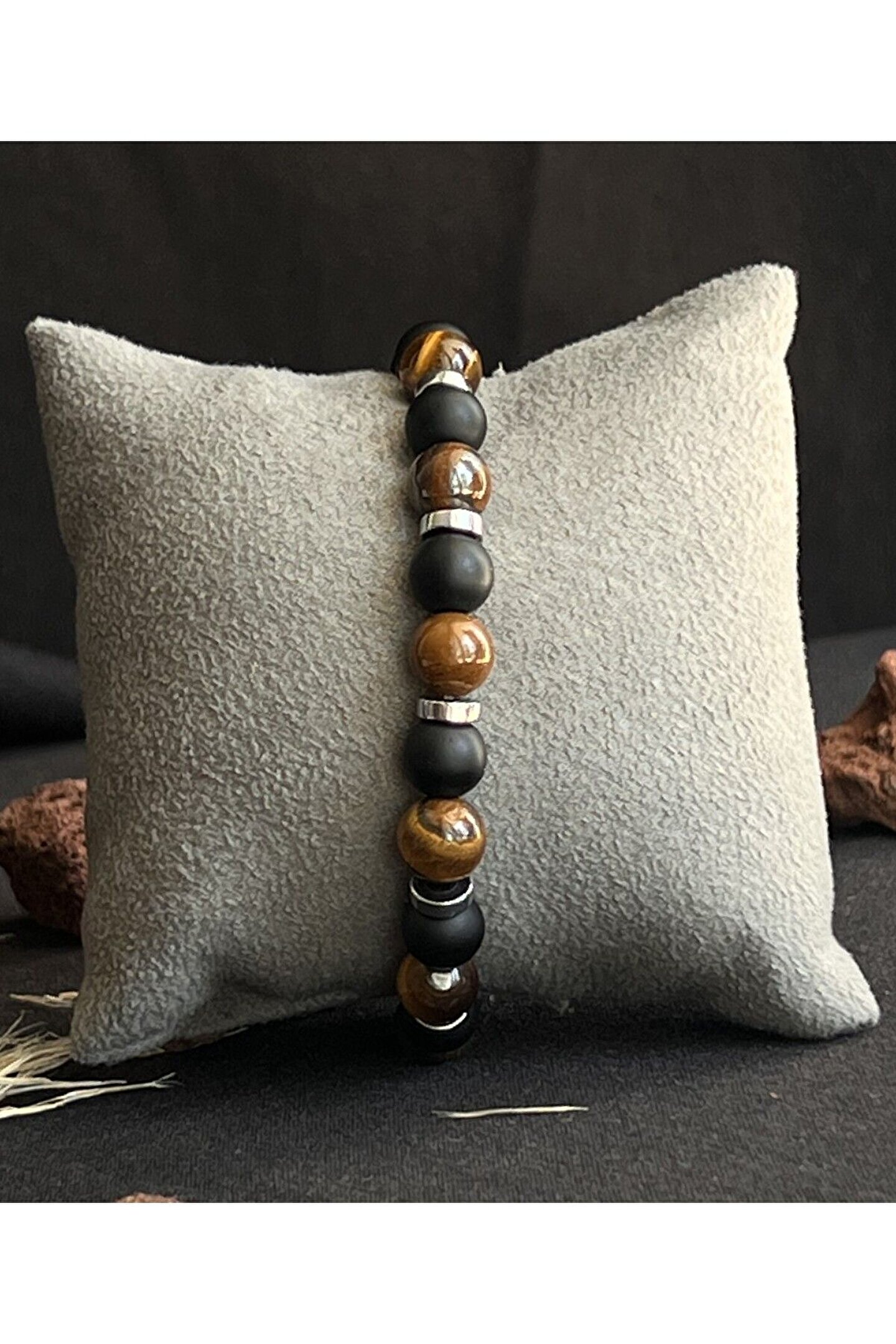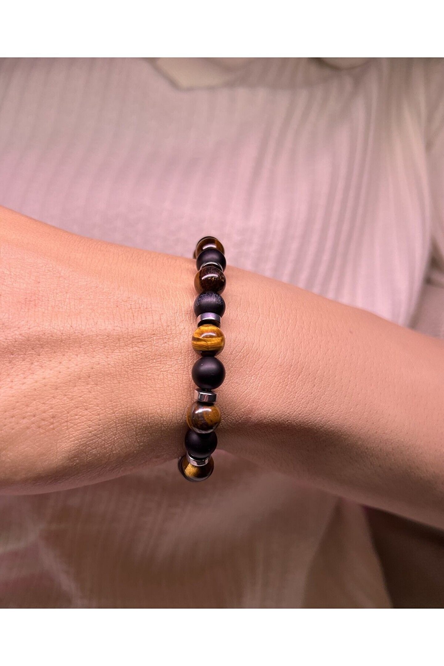 Kaplan gözü mat oniks doğal taş bileklik, doğanın gücünü ve zarafetini bileğinizde taşımanızı sağlar; Kaplan gözü mat oniks doğal taş, benzersiz desenleri ve renkleriyle dikkat çekerken, her türlü kıyafetle uyum sağlar; Doğal taş kullanımı sayesinde her bileklik benzersizdir ve her biri farklı bir hikaye anlatır; Kaplan gözü mat oniks doğal taş bileklik, hem günlük kullanım hem de özel günler için ideal bir aksesuardır;