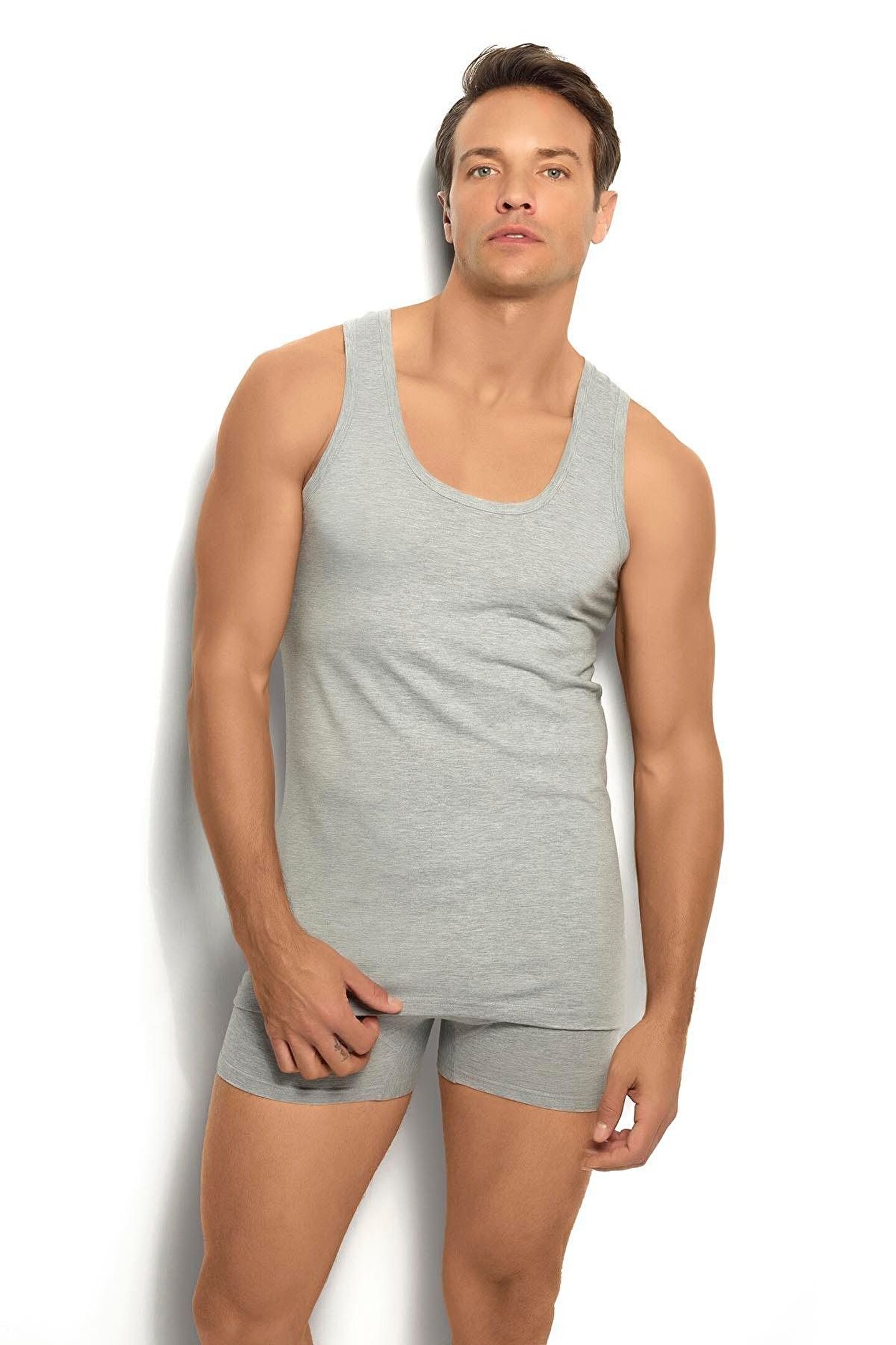 Jiber 110 Erkek Gri Askılı Atlet 3 Adet Paket Abani Classic