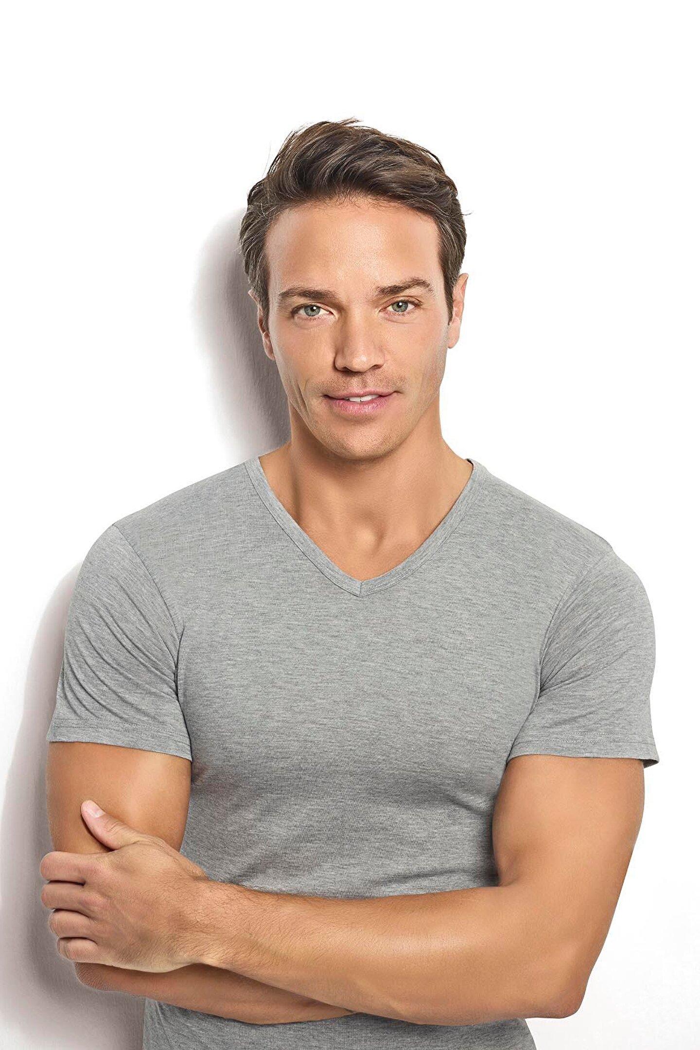 Jiber Erkek Gri Melanj Pamuklu V Yaka Atlet 112
