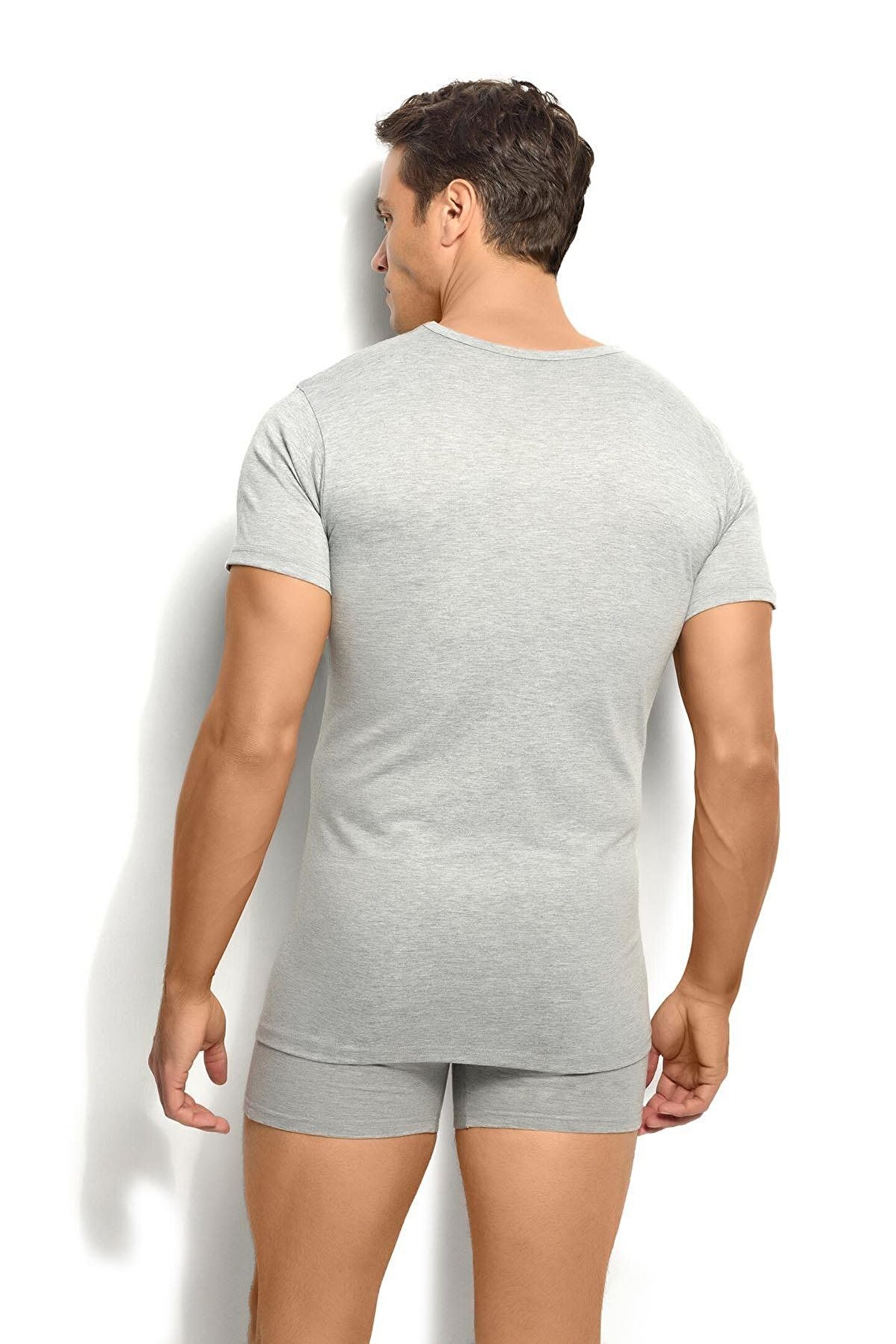 Jiber Erkek Gri Pamuklu Kısa Kollu V Yaka Atlet Fanila 3lü Paket-112