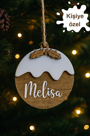 Jolie Ma Ahşap İsme Özel Yılbaşı Ağaç Süsü İsimli hatıra yılbaşı ağacı süsü Yılbaşı pudingi
