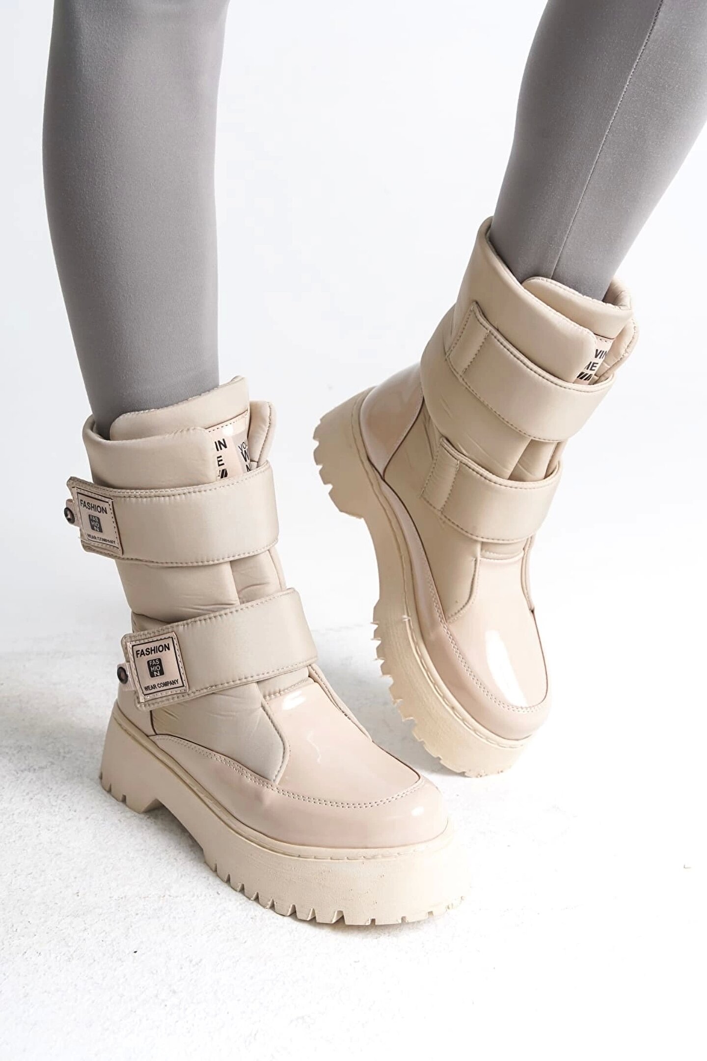 Joy Ayakkabı ELISA Cırt Cırtlı Paraşüt Kumaş Rugan Kadın Bot RKT - Krem