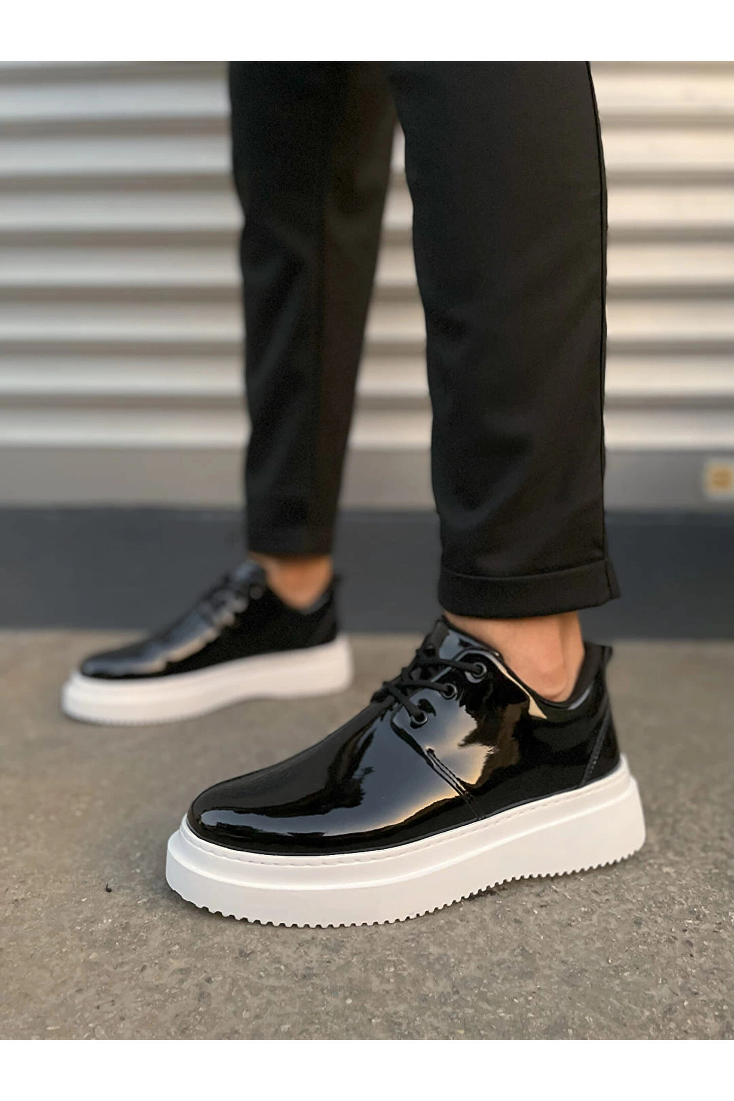 Joy Ayakkabı JY03 Luxor Bağcıklı Rugan Erkek Günlük Spor Klasik Ayakkabı RBT - Siyah