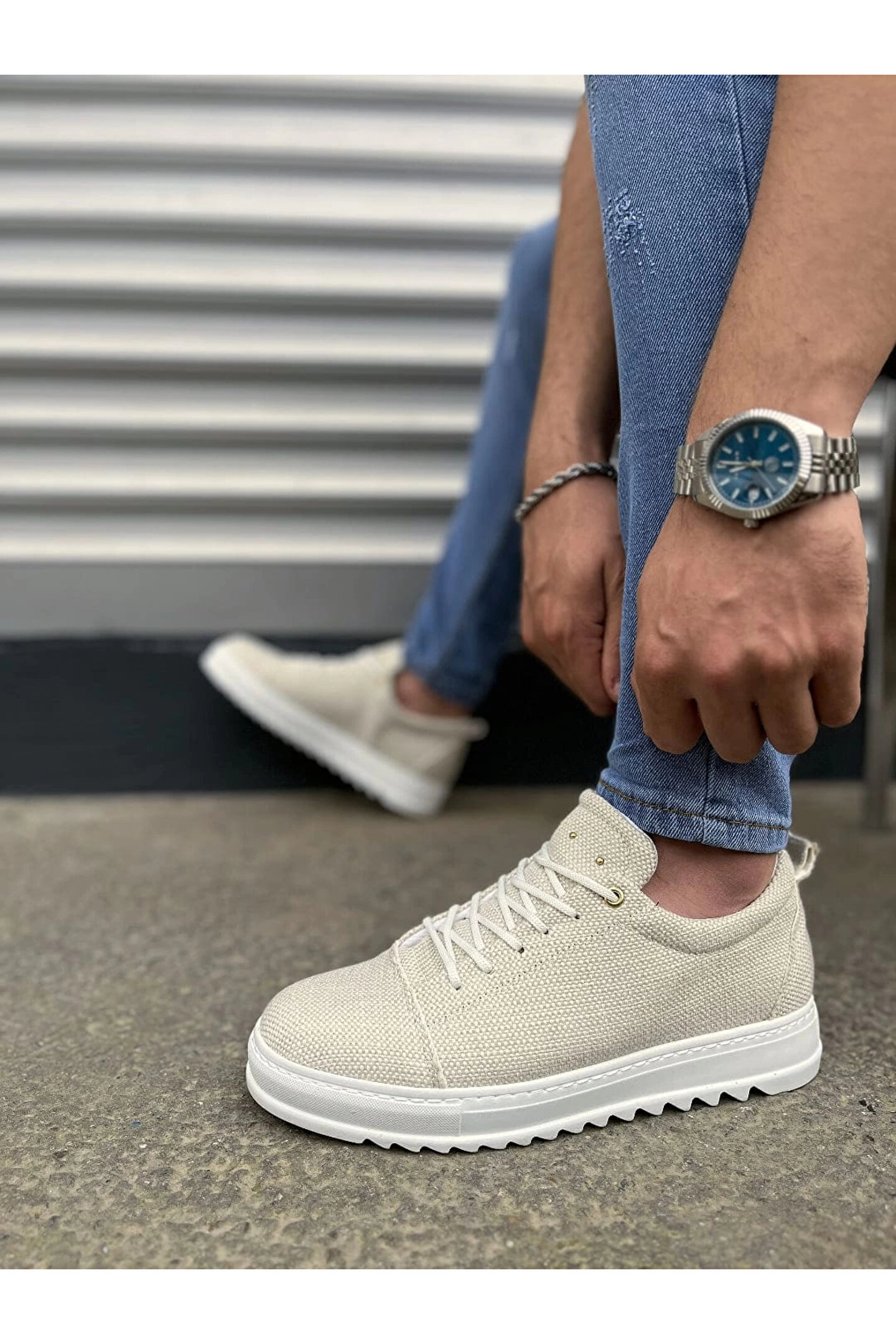 Joy Ayakkabı JY152 Cool Bağcıklı Keten Erkek Günlük Spor Klasik Ayakkabı KBT - Beyaz