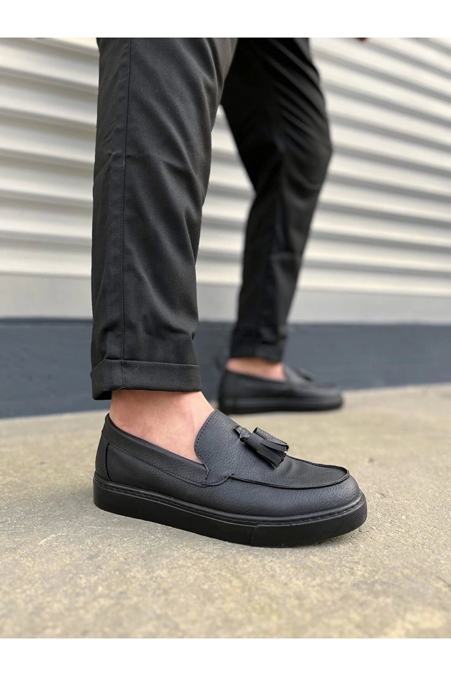 Joy Ayakkabı JY153 Bloom Bağcıksız Püsküllü Cilt Erkek Günlük Spor Klasik Ayakkabı CST - Siyah