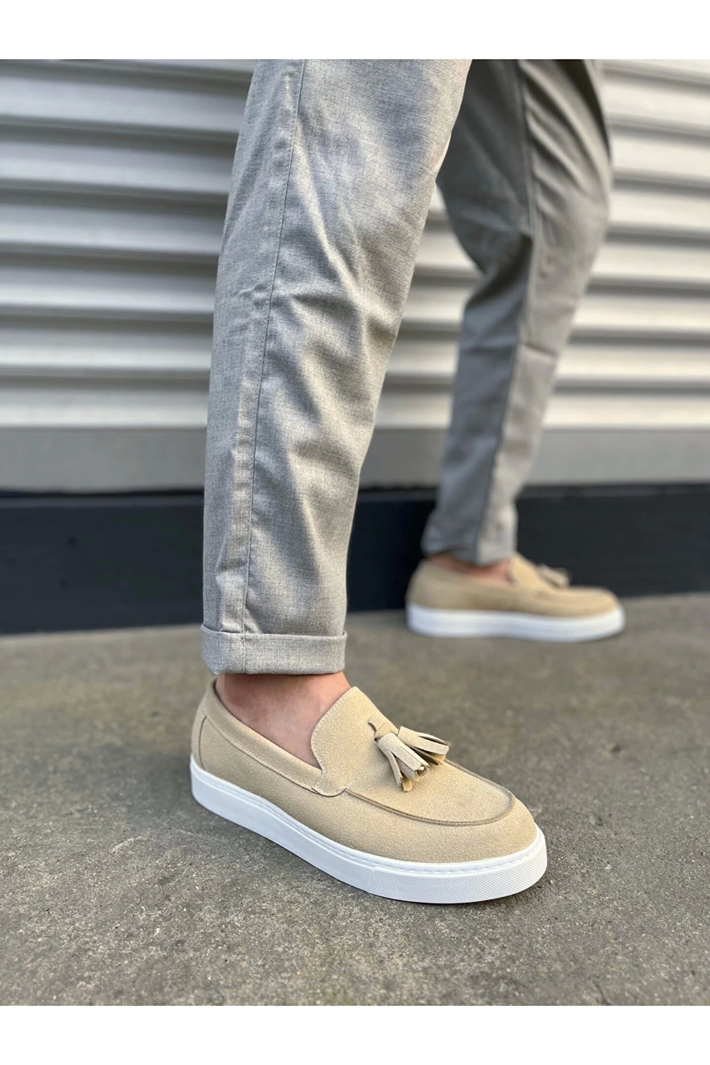 Joy Ayakkabı JY153 Bloom Bağcıksız Püsküllü Süet Erkek Günlük Spor Klasik Ayakkabı SBT - Krem