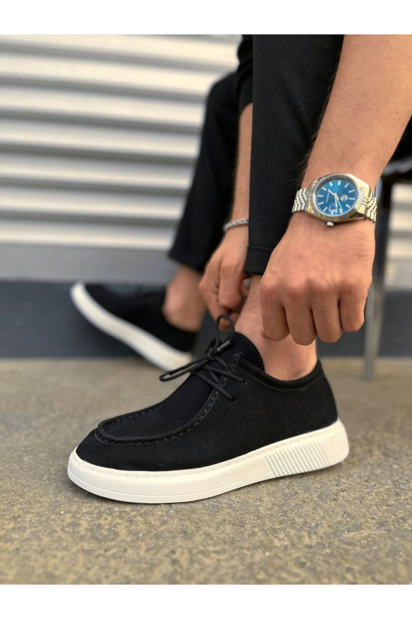 Joy Ayakkabı JY170 Tornado Bağcıklı Süet Erkek Günlük Spor Klasik Ayakkabı SBT - Siyah