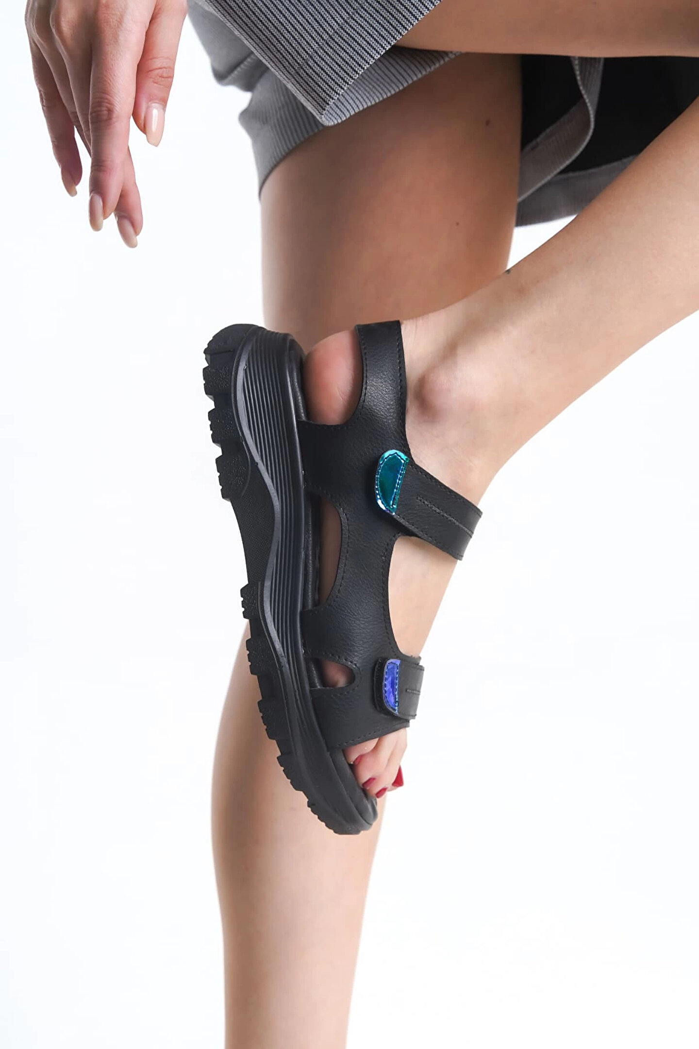 Joy Ayakkabı LAMIA Cırt Cırtlı Ortopedik Taban Kadın Sandalet CST - Siyah