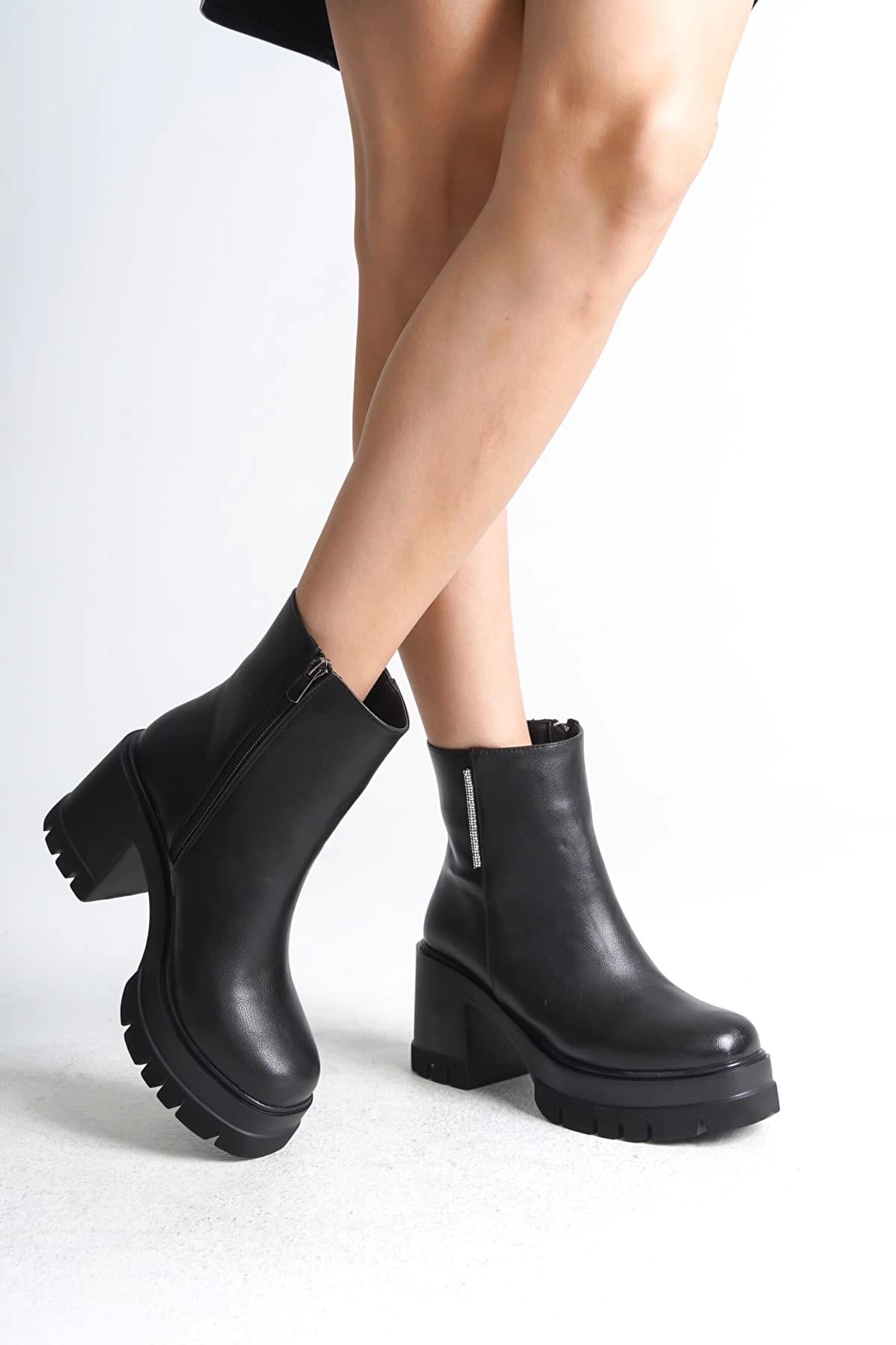Joy Ayakkabı LISSE Fermuarlı Ortopedik Taban Kalın Topuklu Kadın Bot CST - Siyah