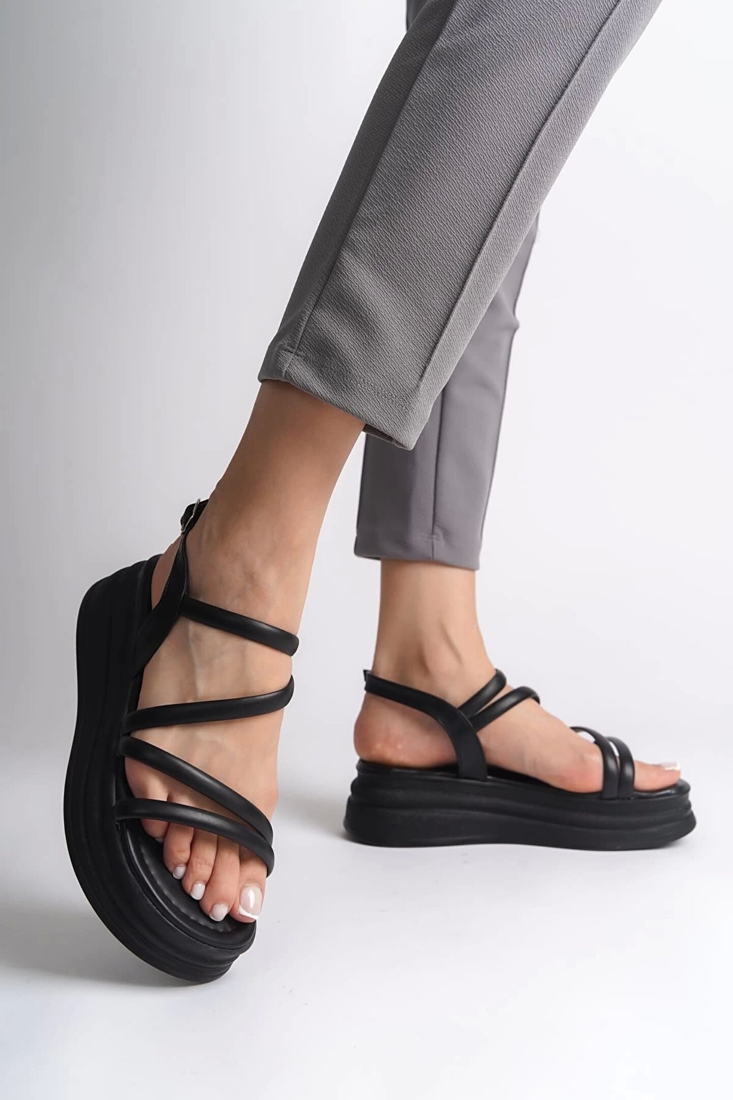 Joy Ayakkabı NATALIE İnce Tokalı Şerit Detaylı Ortopedik Taban Kadın Sandalet CST - Siyah