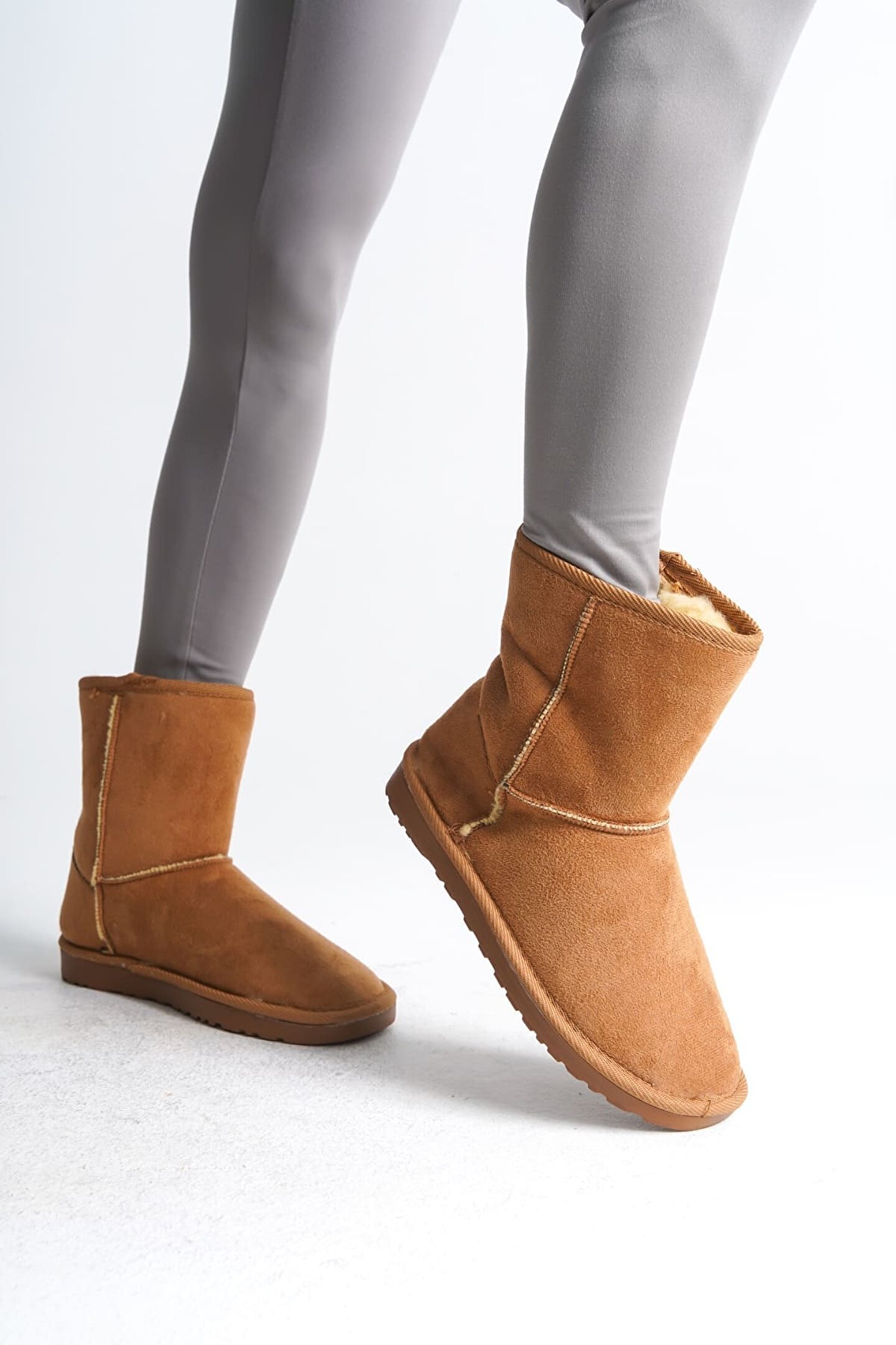 Joy Ayakkabı SELINA Bağcıksız Düz Taban İçi Kürklü Süet Kadın Bot - Taba