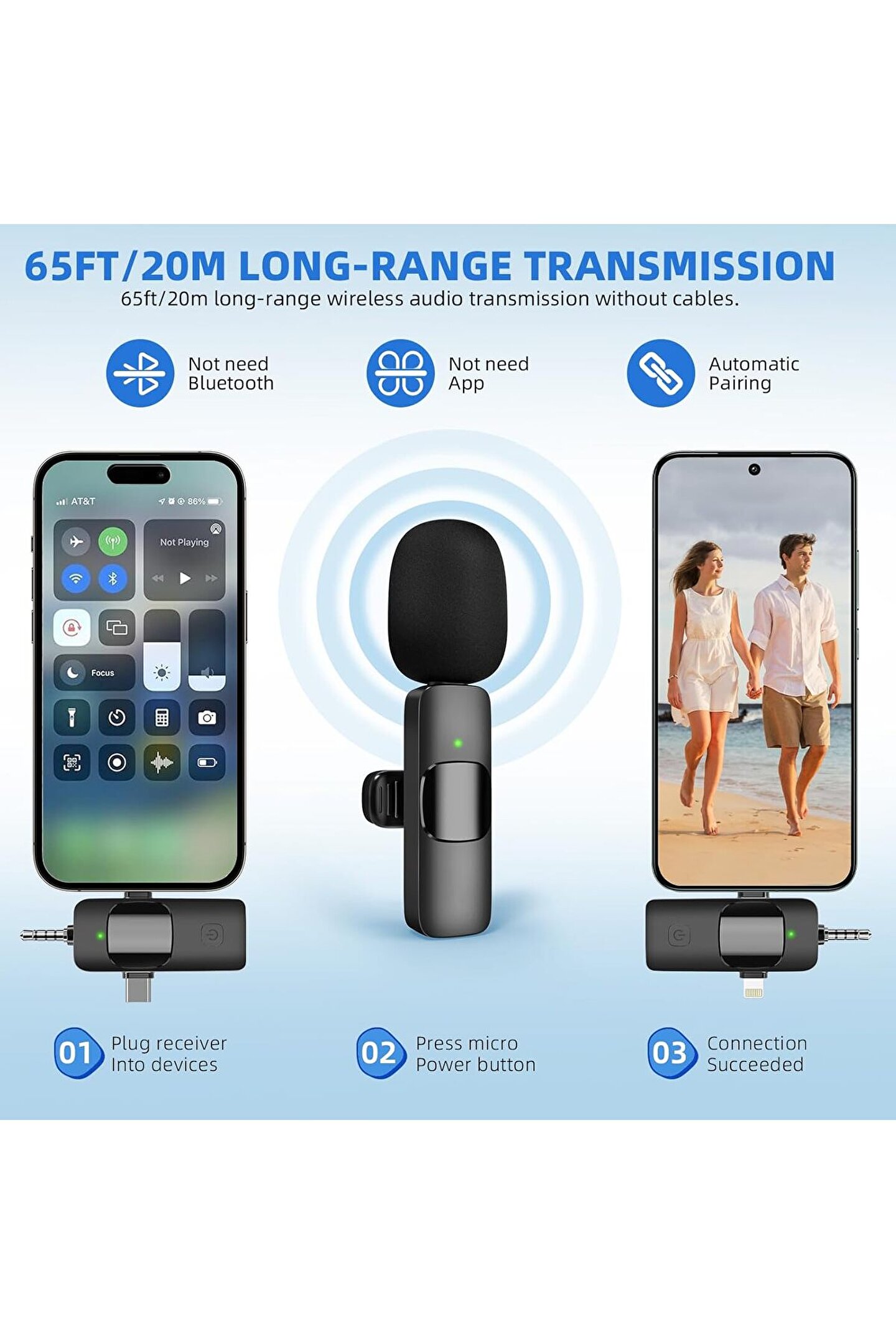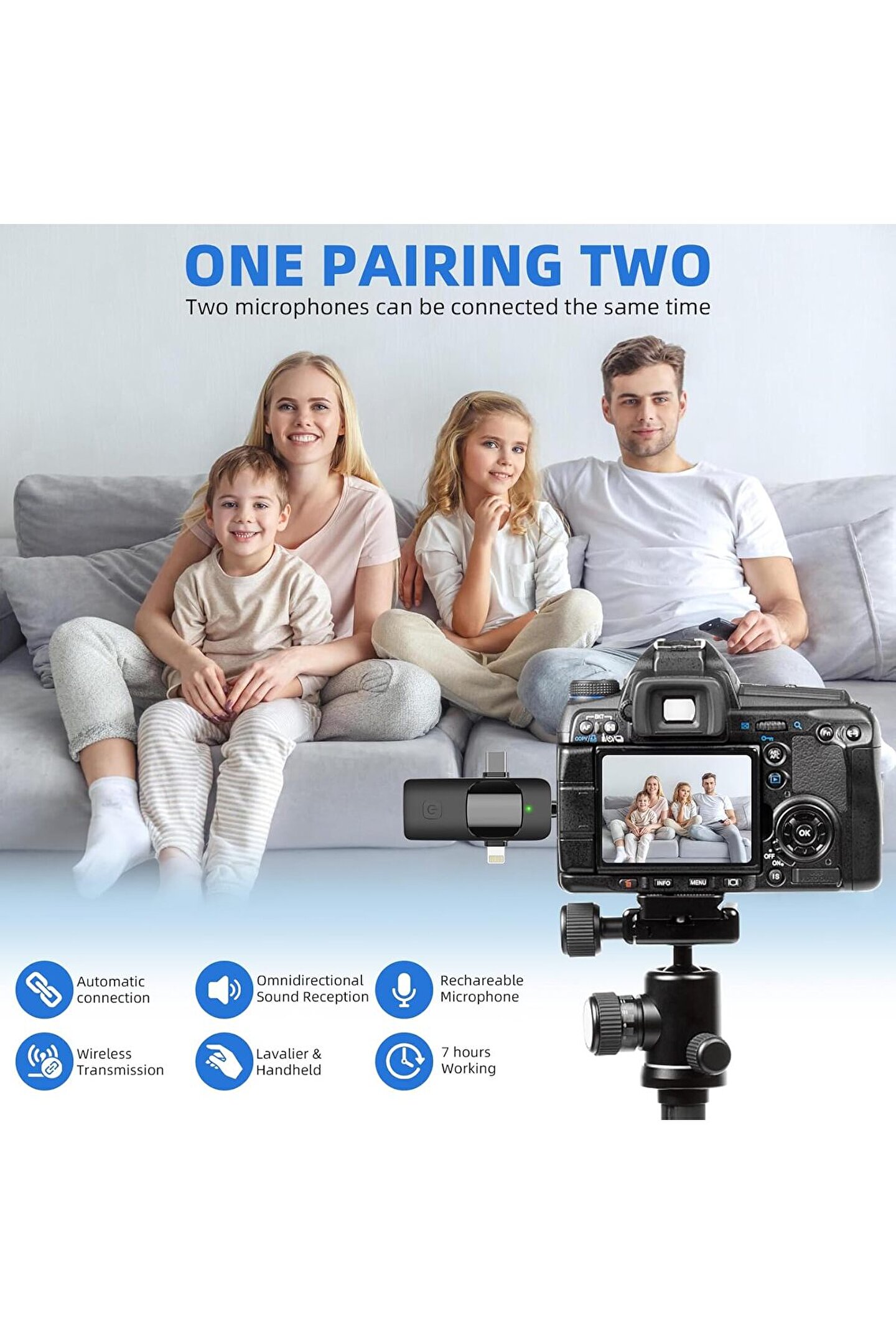 <li> <span>【 Zahmetsiz Otomatik Bağlantı】Kablosuz mikrofonumuz, adaptör, Bluetooth veya uygulama kurulumu gerektirmeyen tak ve çalıştır tasarımıyla kolayca kurulur. Alıcıyı (Lightning/Type-C/3.5mm port) cihazınıza takarak ve taşınabilir mikrofonu etkinleştirerek, iki bileşen otomatik olarak eşleşir.</span> <br> </li>
