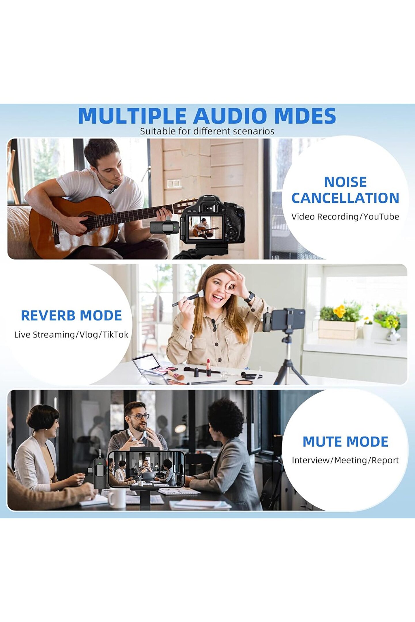 <li> <span>Profesyonel düzeyde gürültü engelleme: Akıllı gürültü azaltma çipleri ve yüksek yoğunluklu sprey geçirmez sünger ile donatılmış çift kablosuz mikrofonumuz, arka plan gürültüsü parazitini etkili bir şekilde ortadan kaldırarak üstün ses kalitesi ve net ses yakalama sağlar. Çok yönlü yetenekleri ile bu mikrofon, her ortamda en iyi net tınıyı sunar.</span> <br> </li>