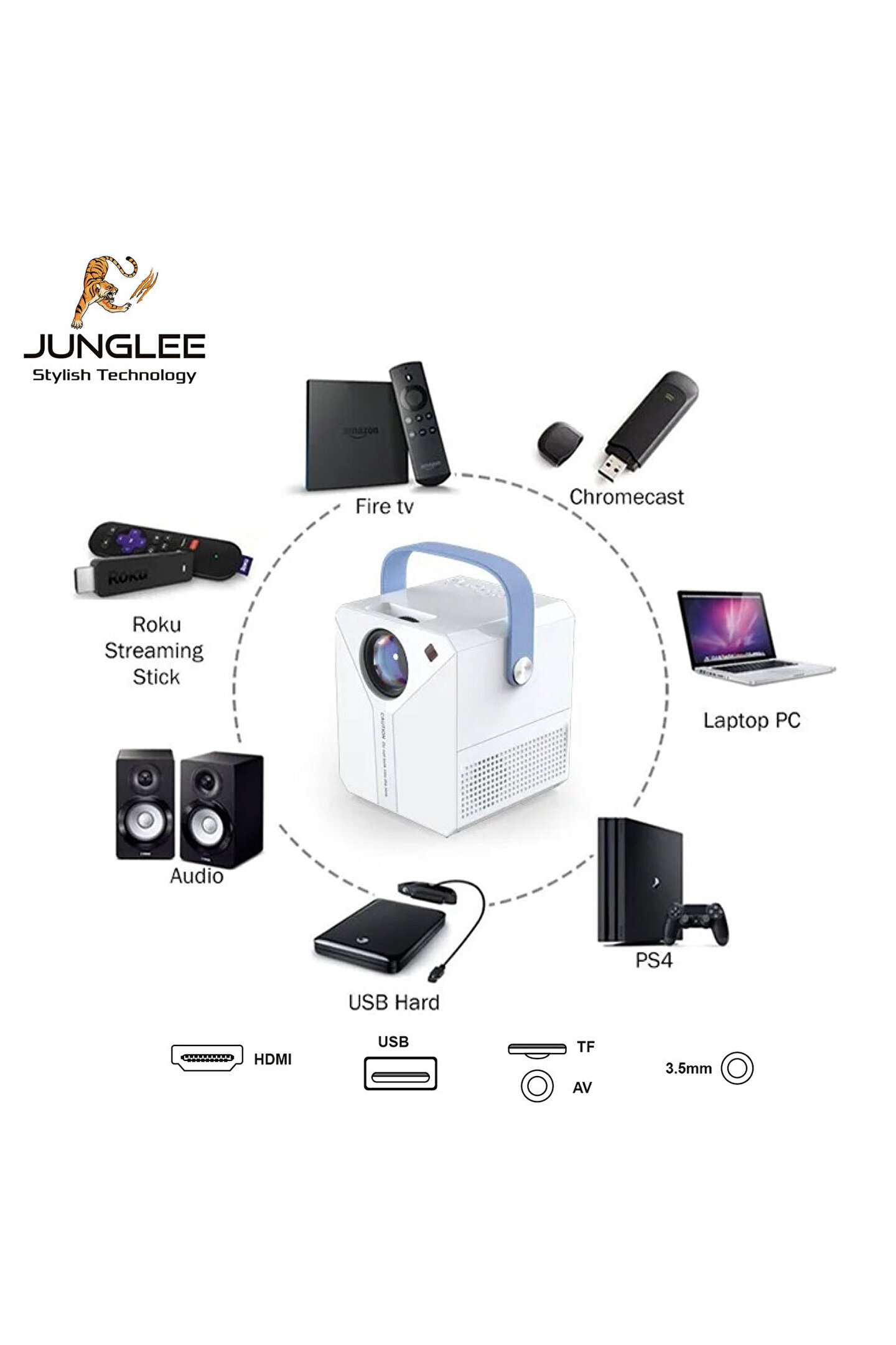 Çift bantlı WiFi ve BT: çift bantlı WiFi ve BT, istikrarlı kablosuz bağlantıyı destekler, çeşitli kullanım ihtiyaçlarınızı karşılayan cep telefonları, tabletler ve diğer cihazlarla projeksiyonu kolayca yansıtabilir.