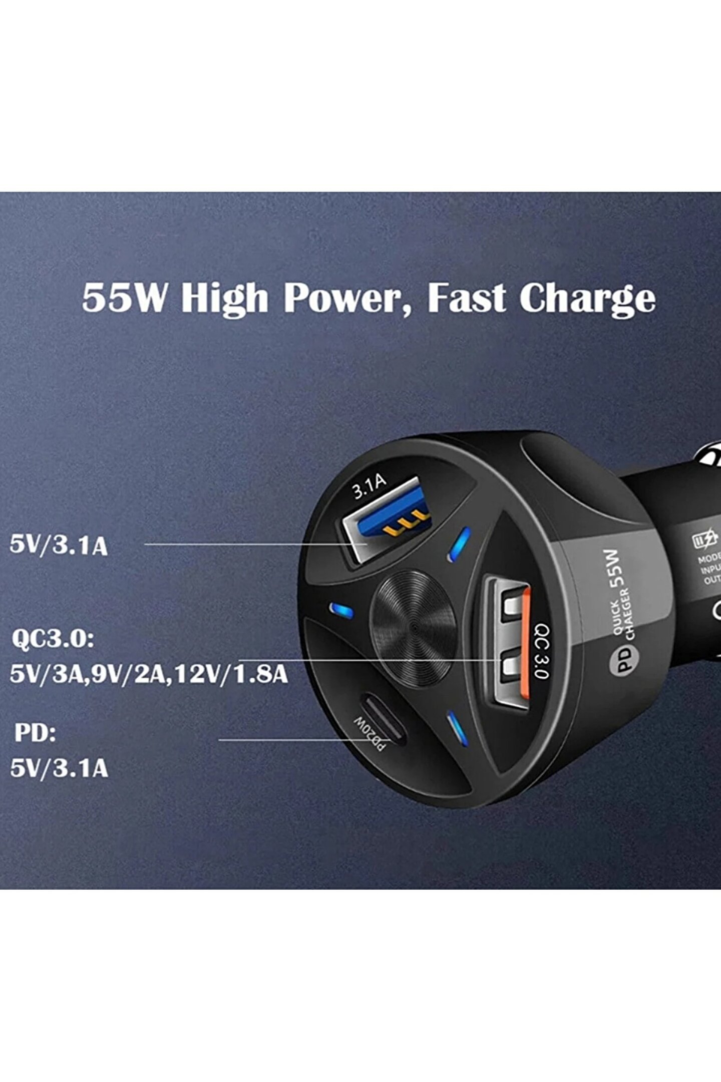 JUNGLEE Araç Çakmaklık Şarjı 2 Usb + 20w Pd Şarj Çıkışlı Hızlı Şarj Destekli 55w Qc 3.0