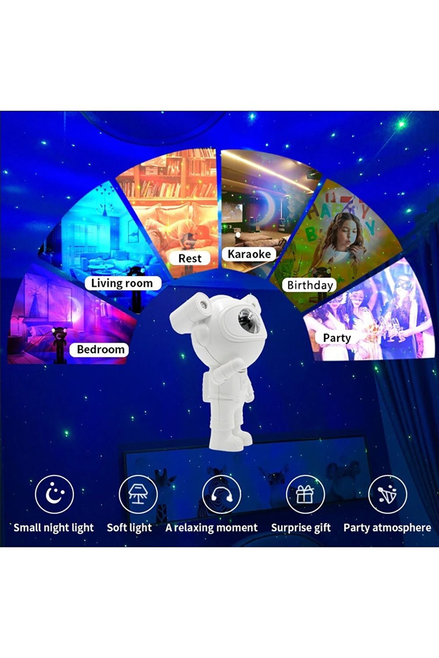 Galaxy projektör astronot renkli yıldızlı gökyüzü projektör yatak odası ev dekor için gece lambası çocuk ruh ışık hediye yıldız projektör Şartname: Güç kaynağı: takın Malzeme: PC,PVC Lazer dalga boyu: 532 nm Kontrol yöntemi: uzaktan kumanda Ürün boyutu: 12*12.3*22.8(cm) Uzaktan kumanda aralığı: 5 M Giriş voltajı: 100-240V 50/60Hz 0.4A Çıkış voltajı: 5V = 1A güç: 5W Özellik: 1. ; Geleneksel projeksiyona veda edin ve yeni projeksiyona hoş geldiniz. ; Kafa, öngörülen ışığın yönünü değiştirmek için birden fazla açıda döndürülebilir. ; 2. ; Kol, astronot deneyimini daha gerçekçi hale getirerek 360 derece dönebilir. ; 3. ; Çeşitli aydınlatma efektleri, geniş yıldızlı gökyüzü hissetmenizi sağlar. ; 4. ; Zaman anahtarı, tatlı bir şekilde evrene ve yıldızlı dreamland'a girin. ; Kapatmak için bir zamanlayıcı ayarlayın, bu yüzden astronotun işi hakkında endişelenmenize gerek yok. ; 5. ; Aile ve çocuklar için en iyi hediye: yıldızların altında yemeklerin tadını çıkarın, rahatlatıcı bir spa ortamı yaratın veya birkaç saniye içinde ev sinemanıza özellikler ekleyin. ; Bu astronot projektörü evinizde herhangi bir alan için oyun değiştiren bir rol oynayabilir. ; Bu aynı zamanda yetişkinler ve çocuklar için mükemmel bir hediye. ; 6. ; Geniş projeksiyon aralığı, çeşitli sahneler için uygundur. ; Aile toplama/doğum günü/DJ bar/karaoke/oyun odası/ev sineması aksanı/noel/düğün için uygundur. ; 7. ; Doğum günleri, tatiller, çiftler, çocuklar, arkadaşlar ve akrabalar için en iyi ilk seçim hediyesi olarak kullanılabilir;